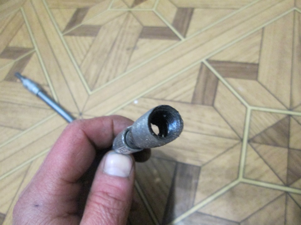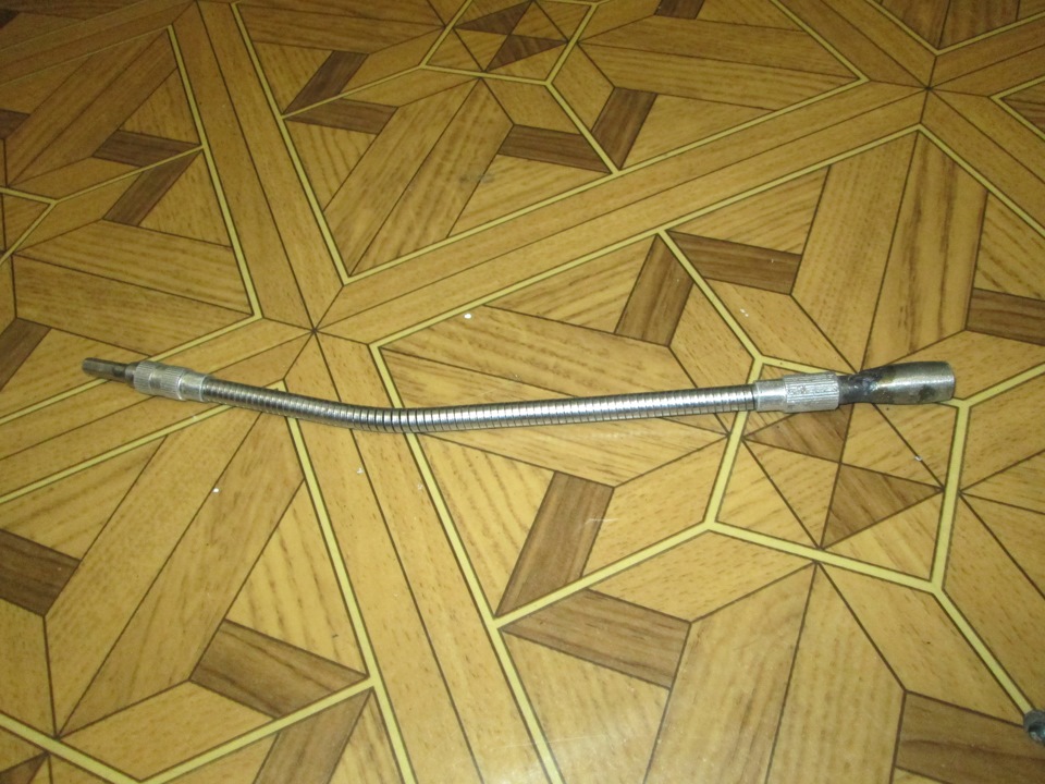 Да, и чтобы одному было удобней ставить задние стойки. тем более применяем бублики СС-20, а они плотненько садятся в отверстие стакана, у них втулка обрезинена, я изготовил не хитрую "приблуду" из старого гибкого удлинителя для шуруповерта: