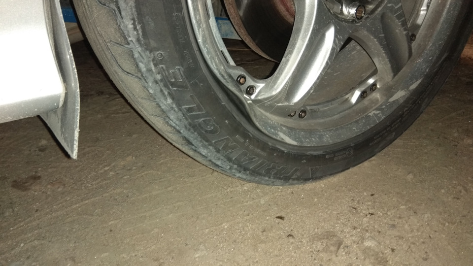Рычаг не погнул? тяги? Я чисто диском в бордюр въехал, кромкой, минуя резину. Поэтому такой результат)