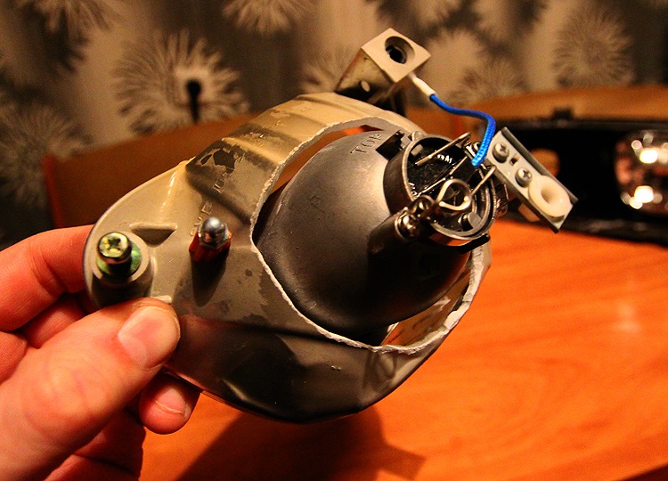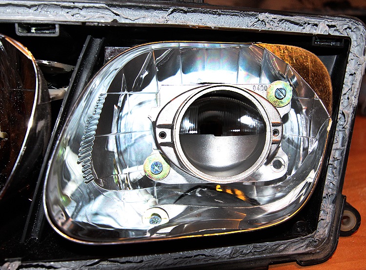 В отражателе ближнего, сделаны отверстия дрелью…подпилины…для легкого проникновения в них задней стенки линз.