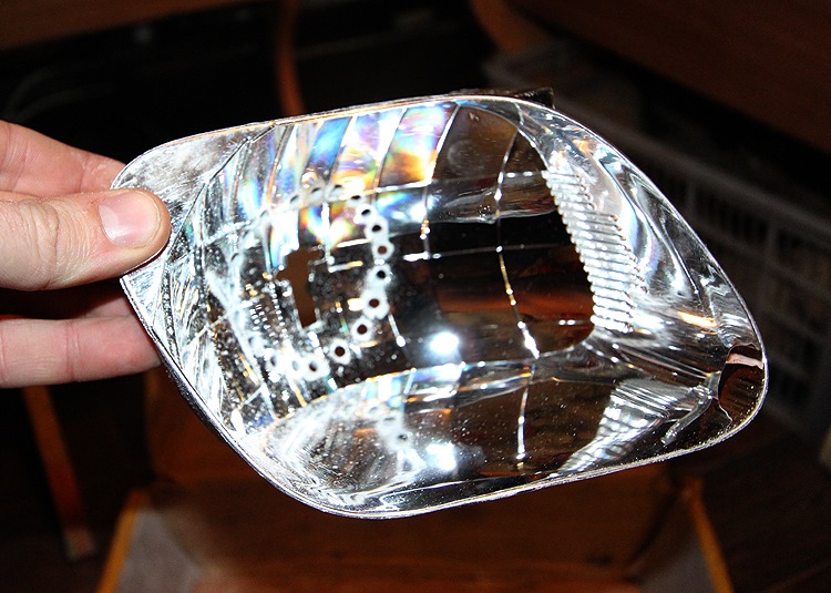 ПТФ от Субару разбираем также прогрев в духовом шкафу, но в них герметик иной и температура ему сильно не помогает, в общем ковыряются хуже. Извлек линзы, довольно маленького размера, как и хотел, чтоб они нормально уместили в фаре) То что линзы идут под ПТФ, видно по форме шторки и с помощью напильника легко так меняет свой вид. Что и планировалось проделать.