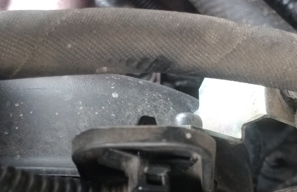 Так еще должны убрать "ухо монтажное" на двигателе, по крайней мере на 1.8. Сам когда переставил клипсу тоже обратил внимание на это ухо и оно было бы причиной другого перетирания (не помню точно, шланга или электрики, скорее второе)