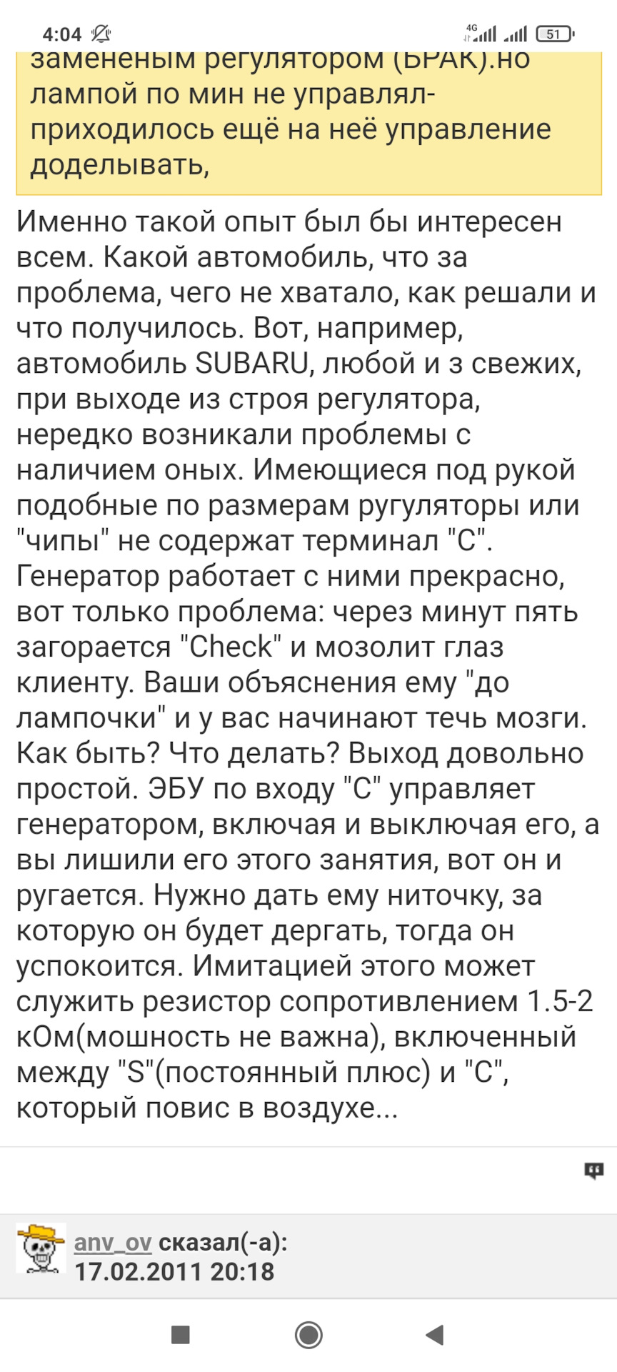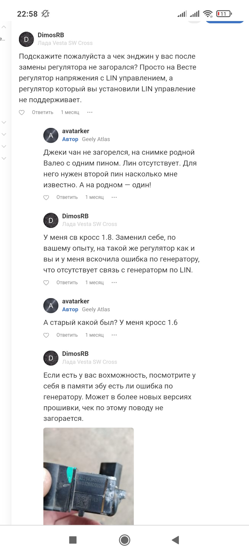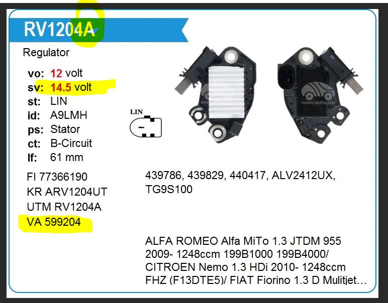С новым регулятором такого не будет. ARV1103 не поддерживает функцию управления по LIN шине. В этом регуляторе идет управление по контакту DFM(FR). В нашем случае регулятор тупо держит напряжение по максимуму. У меня к примеру на АКБ 14,5В и на приборке 14,3-14,4В без нагрузки на холостом ходу. По мере роста нагрузки напряжение тупо падает из-за вольтамперной характеристики генератора.