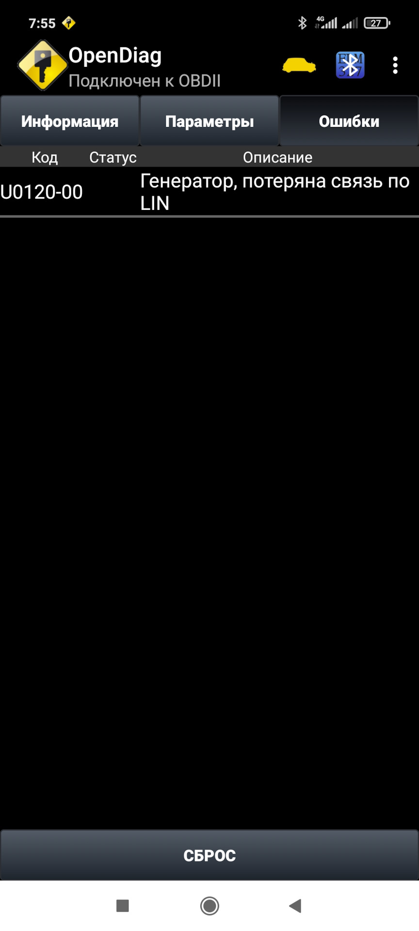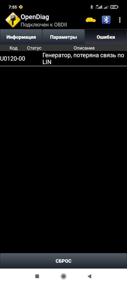 Ошибка генератора по LIN висит в памяти, сброс помогает на 5 секунд и снова появляется.