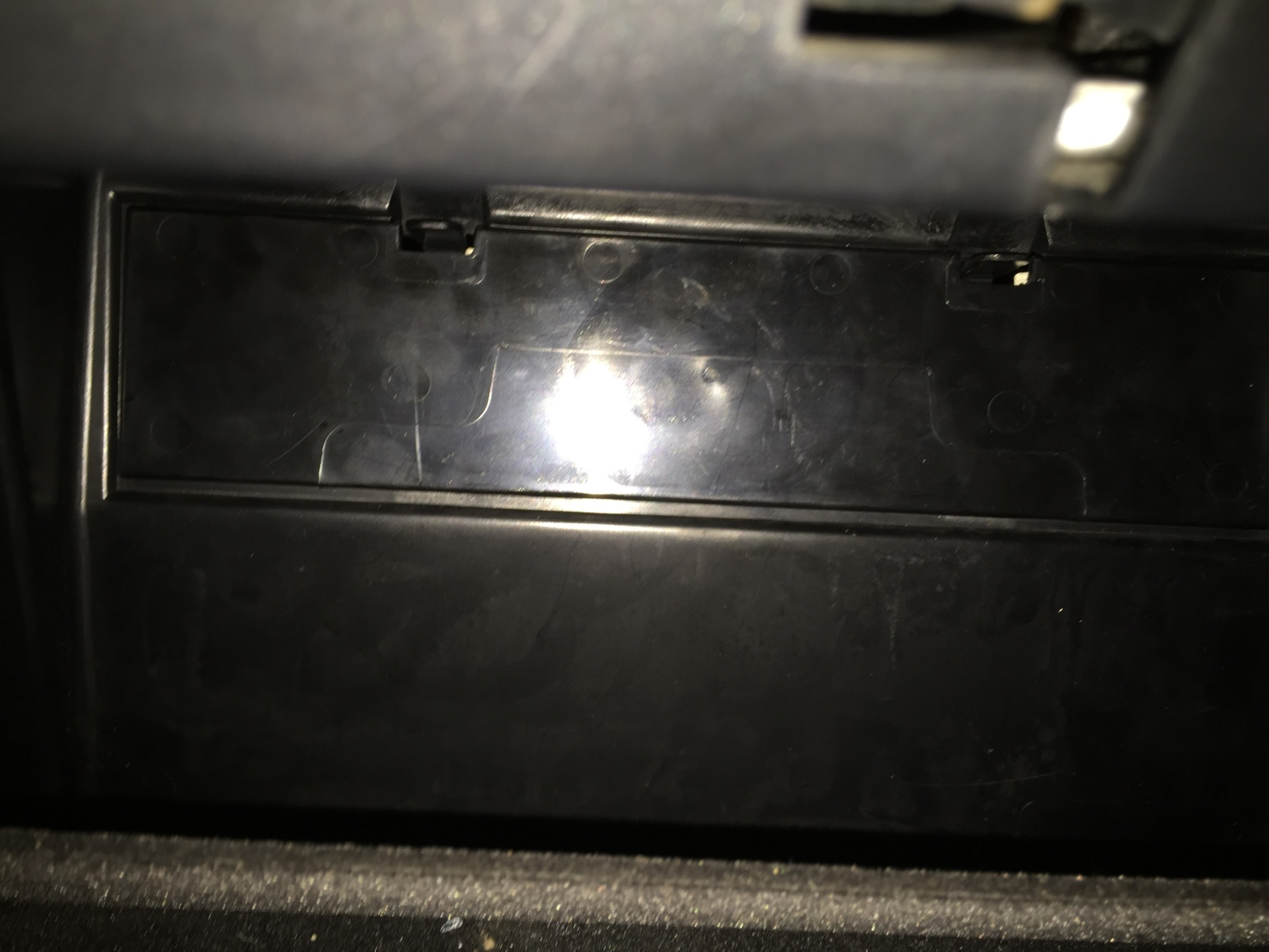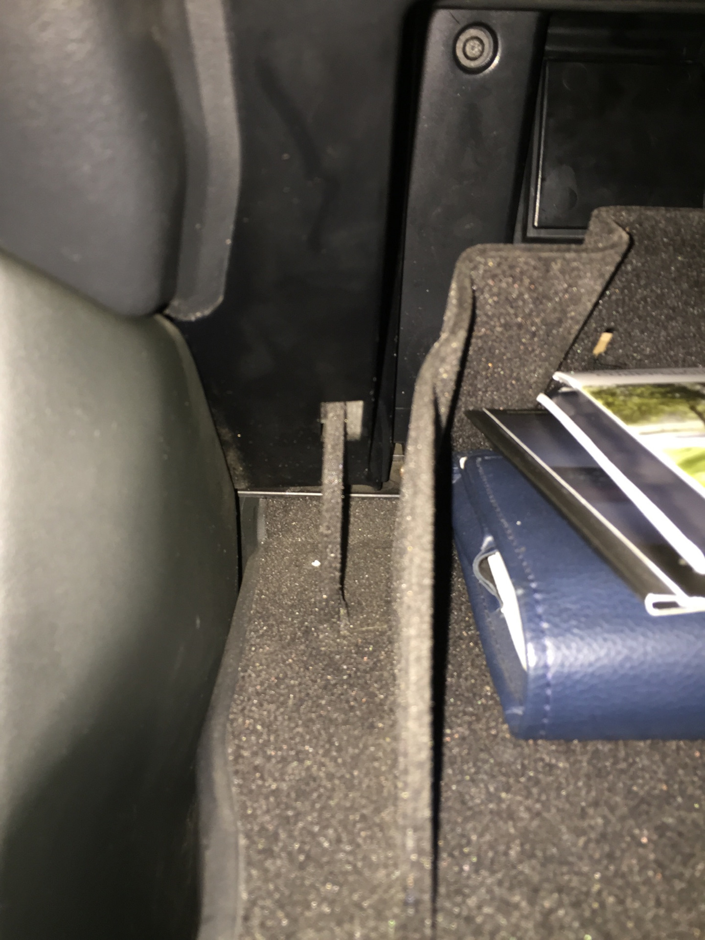2. Прижимаем вправо стержень ограничивающий его ход (находится в левой части бардачка) и полностью опускаем бардачок.