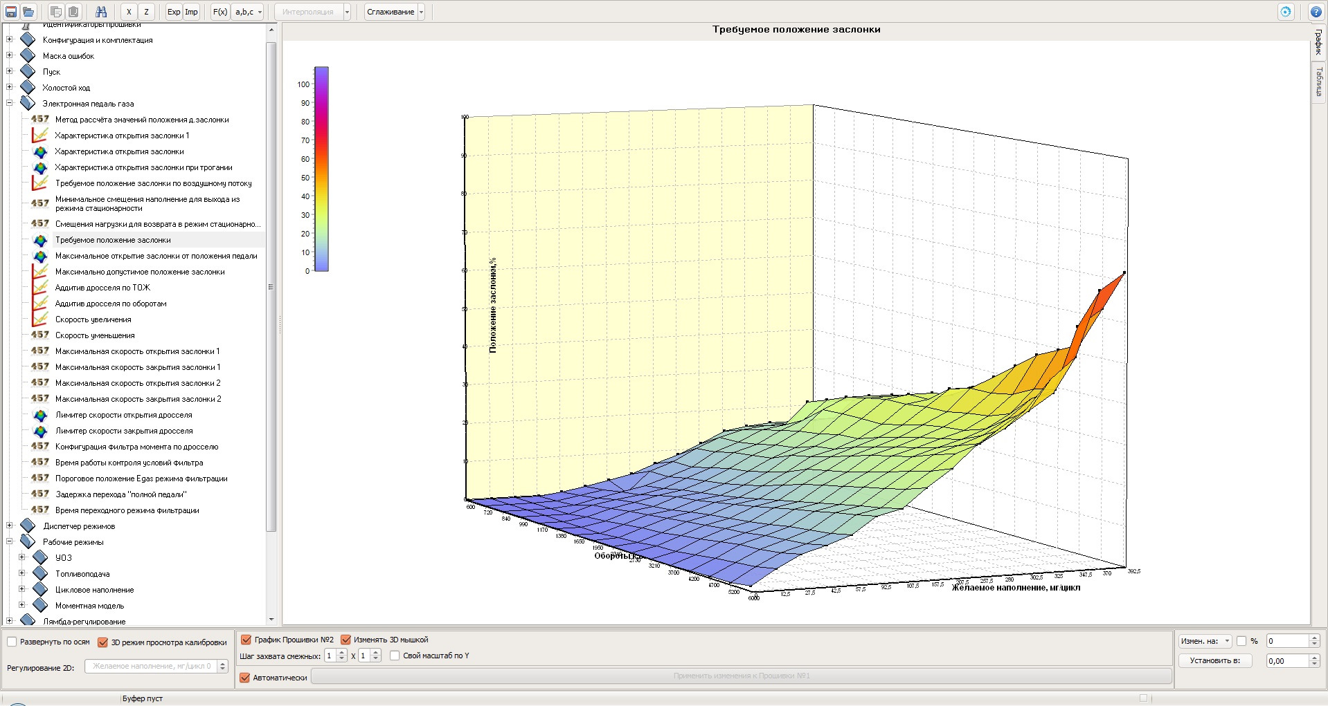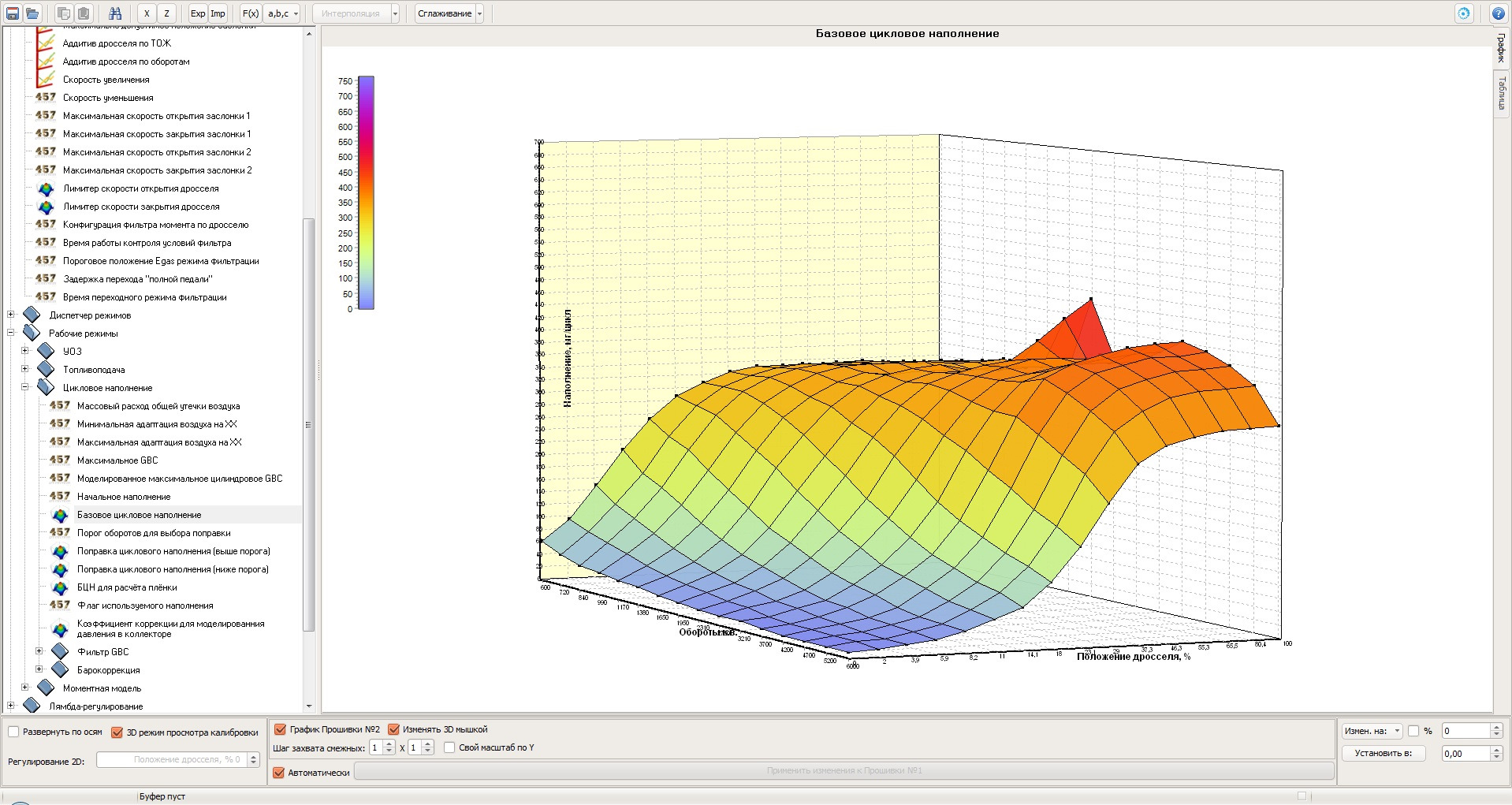 3. В зависимости от оборотов КВ и положения дросселя по таблицам наполнения определяем цикловое наполнение и желаемое наполнение.