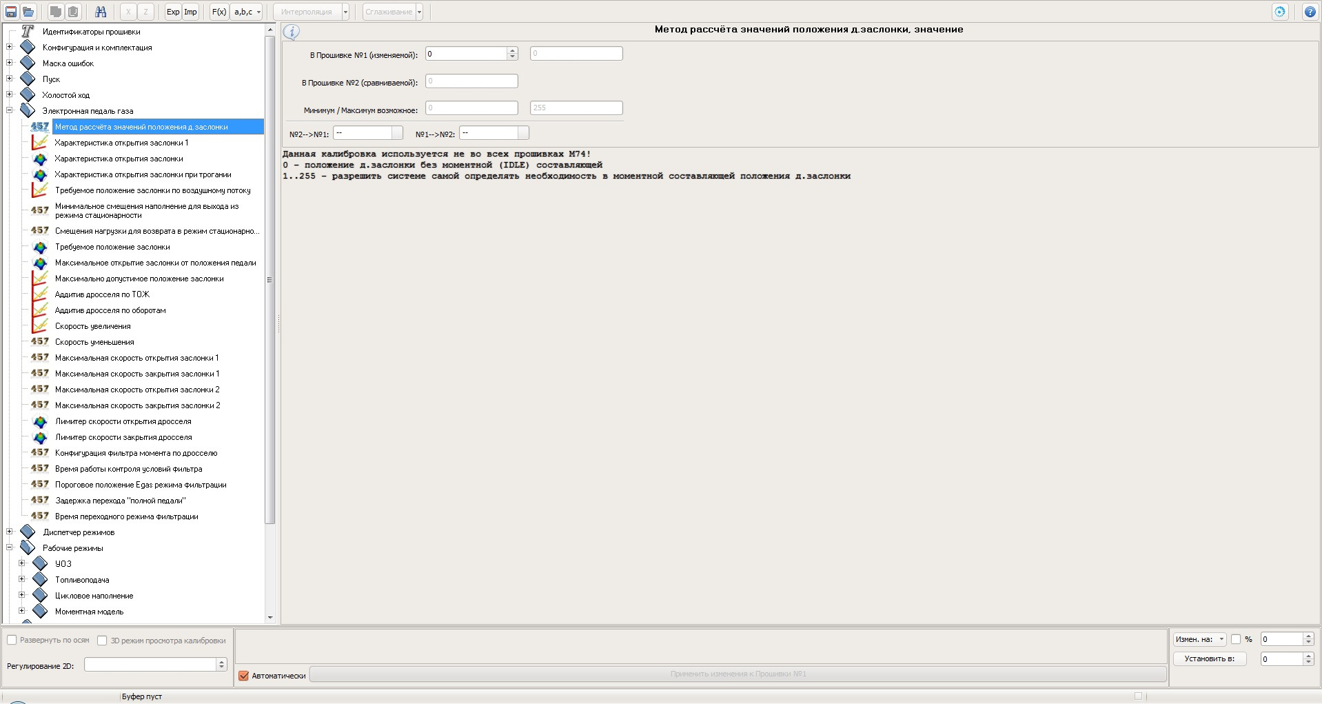Ковыряя прошивку, начинаешь понимать, что она мультирежимная: умеет работать как по моментной модели, так и по привычным (с поправкой на использование электропедали), за что разработчикам можно (И НУЖНО) сказать огромное спасибо: без моторного стенда с кучей оборудования откатать её не всегда будет представляться возможным. Подтверждением сему факту можно считать наличие различных рабочих таблиц как для упрощённого режима, так и для режимов работы по моментной модели.