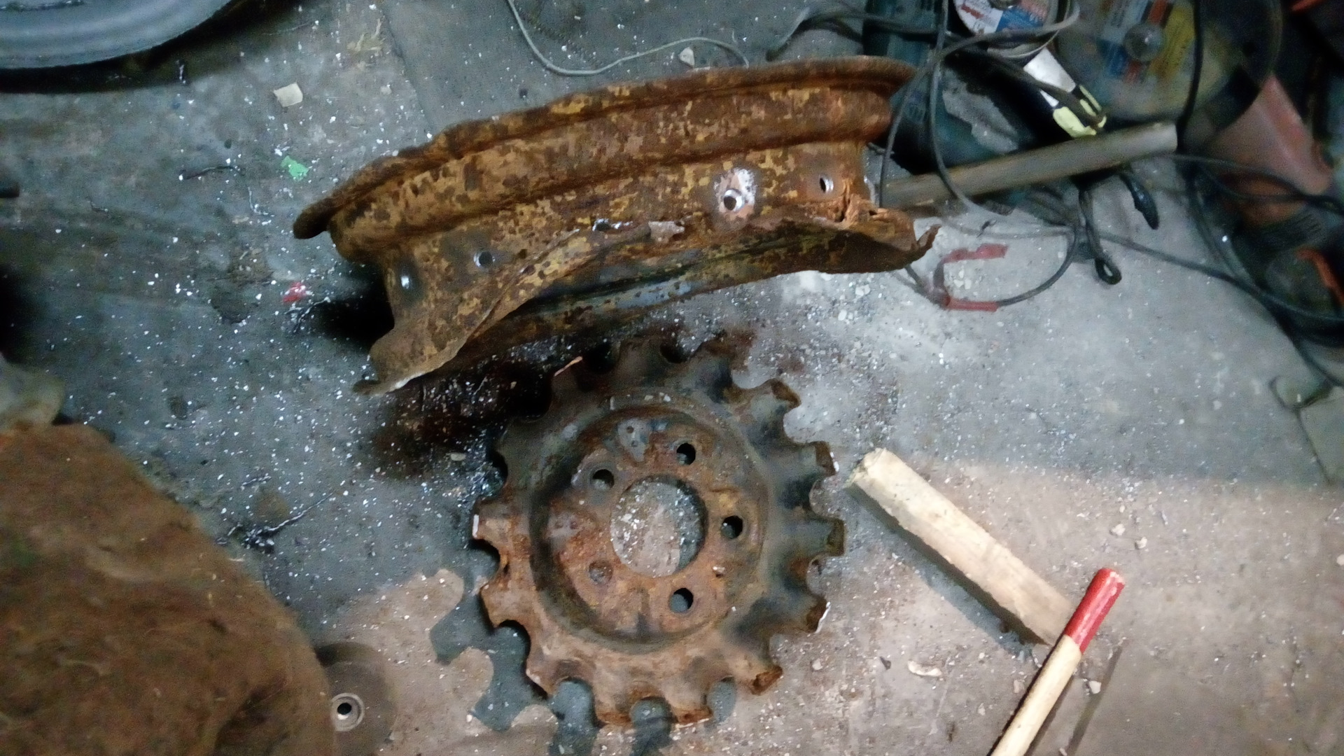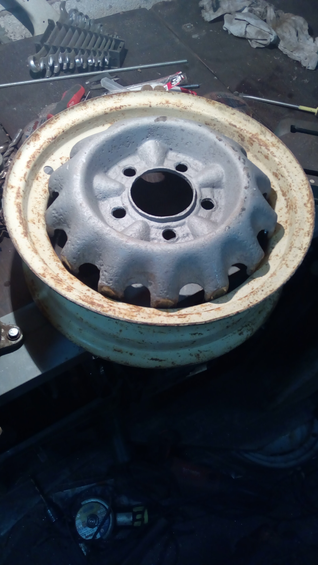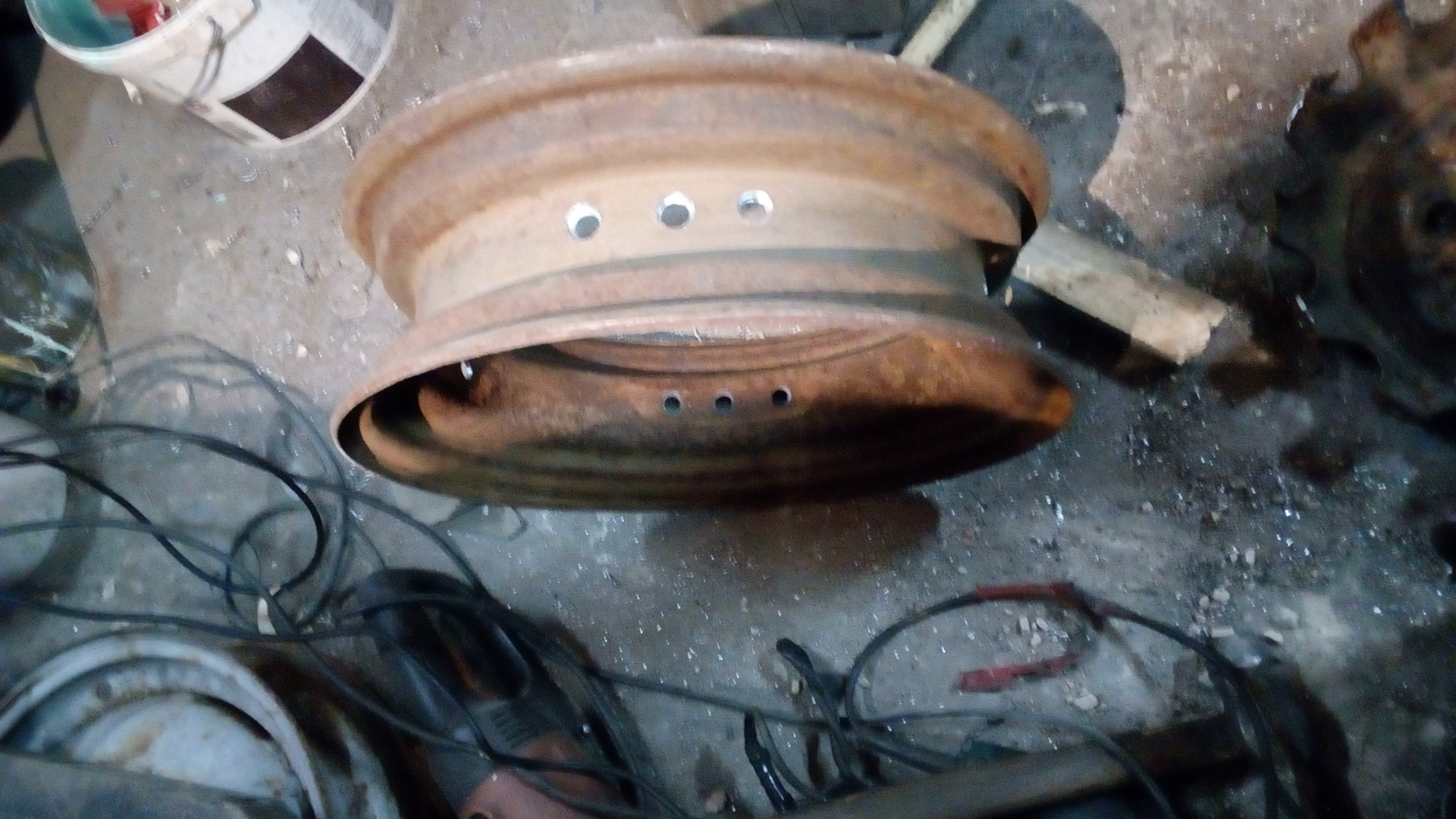 Поскольку предстоит длительная кузовщина, надо выставить раму относительно пола правильно, да и по крыльям важна геометрия, вначале занялся правильными дисками. Долго не решался на эту процедуру, но хороших дисков все меньше, а лесные как правильно уже уставшие. Причём чаще больше страдает обод, наверно потому что долго лежит в сырой земле с резиной, а влага не сохнет между ними.