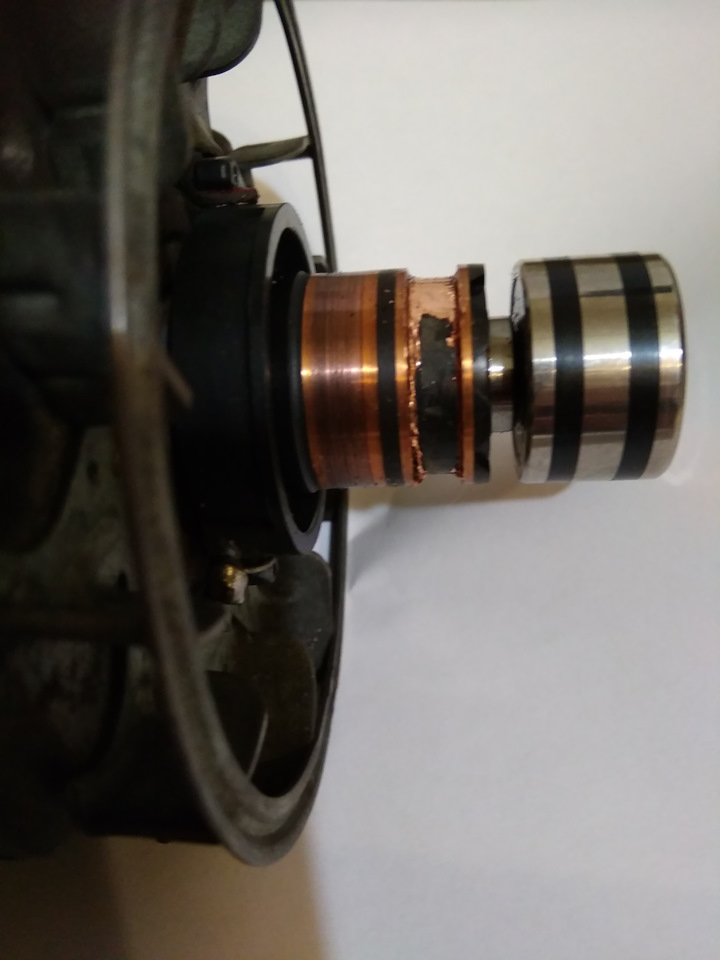 а вы не обратили внимание на одну закономерность . стирается или контактная щетка или контактное кольцо обмотки возбуждения ротора и именно ближнее к заднему подшипнику . а вот щетка и кольцо которое расположено ближе к обмотке ротора почти не тронуты, . как будто вчера только поставили .