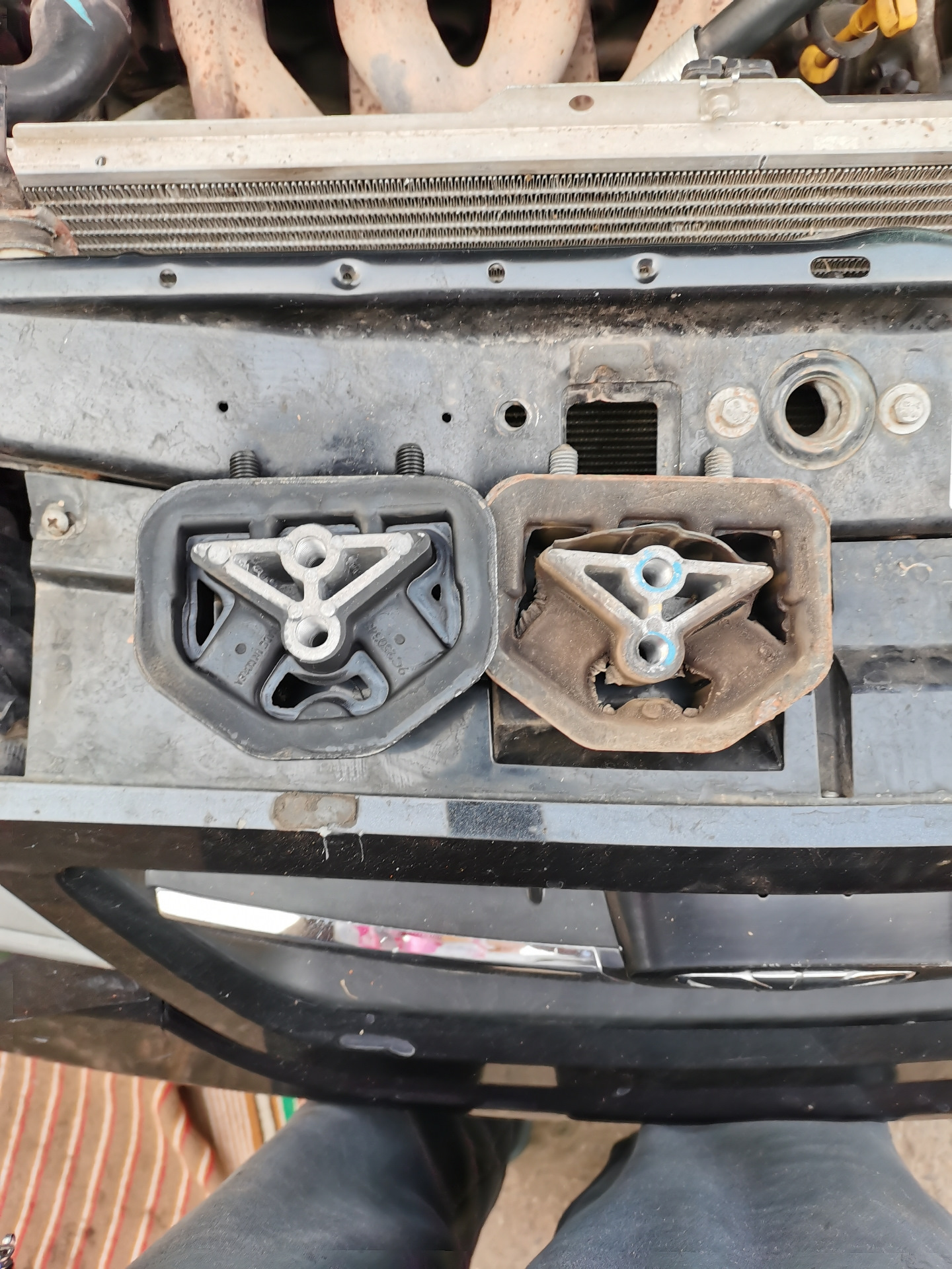 К 110тыс пробега появились вибрации на руль и кузову было решено заменить подушки двигателя и коробки)