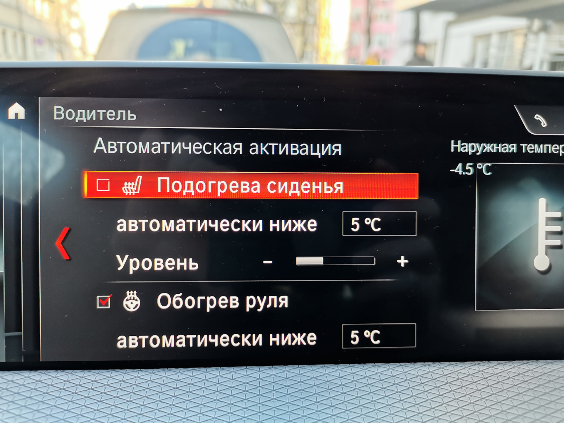 А вот автовключения обогрева руля нет. Либо Я не нашёл. Но надо отдать должное кнопка включения обогрева руля в G-серии расположена в более удобном месте)