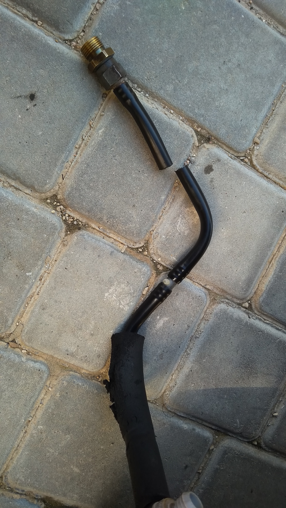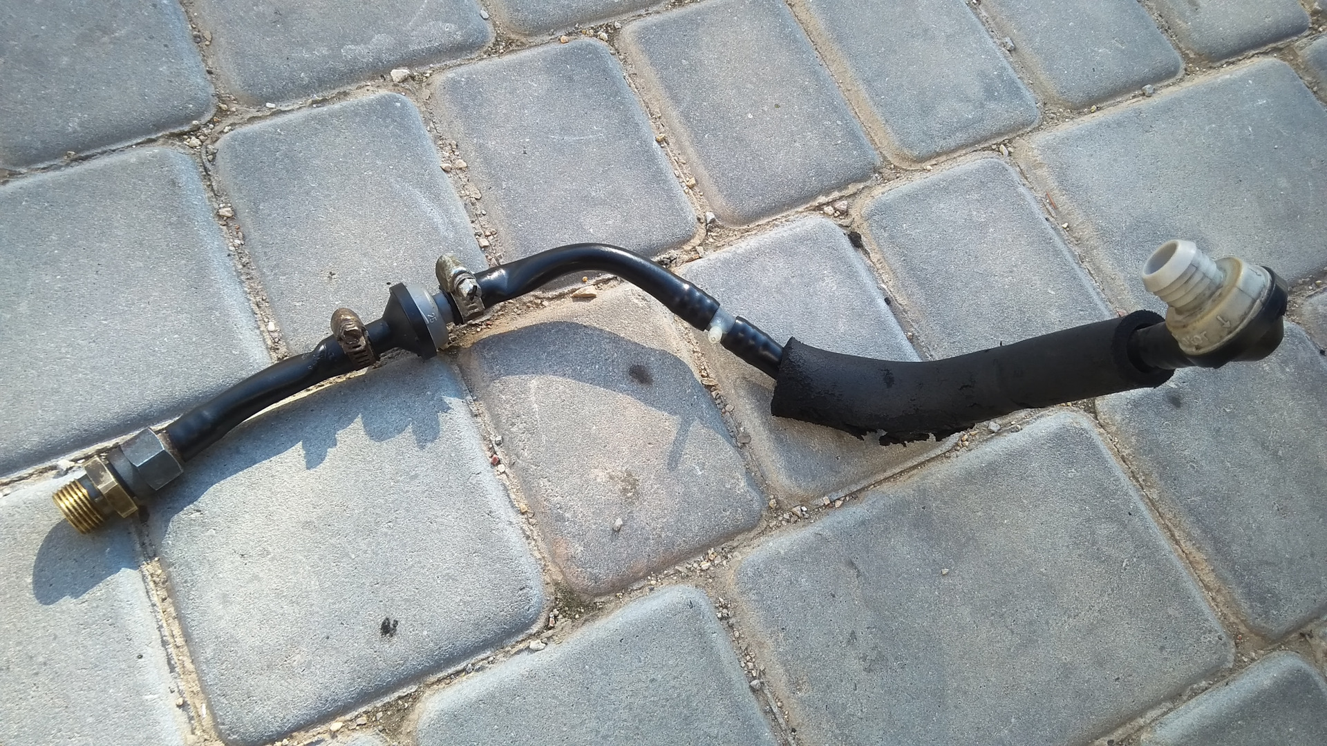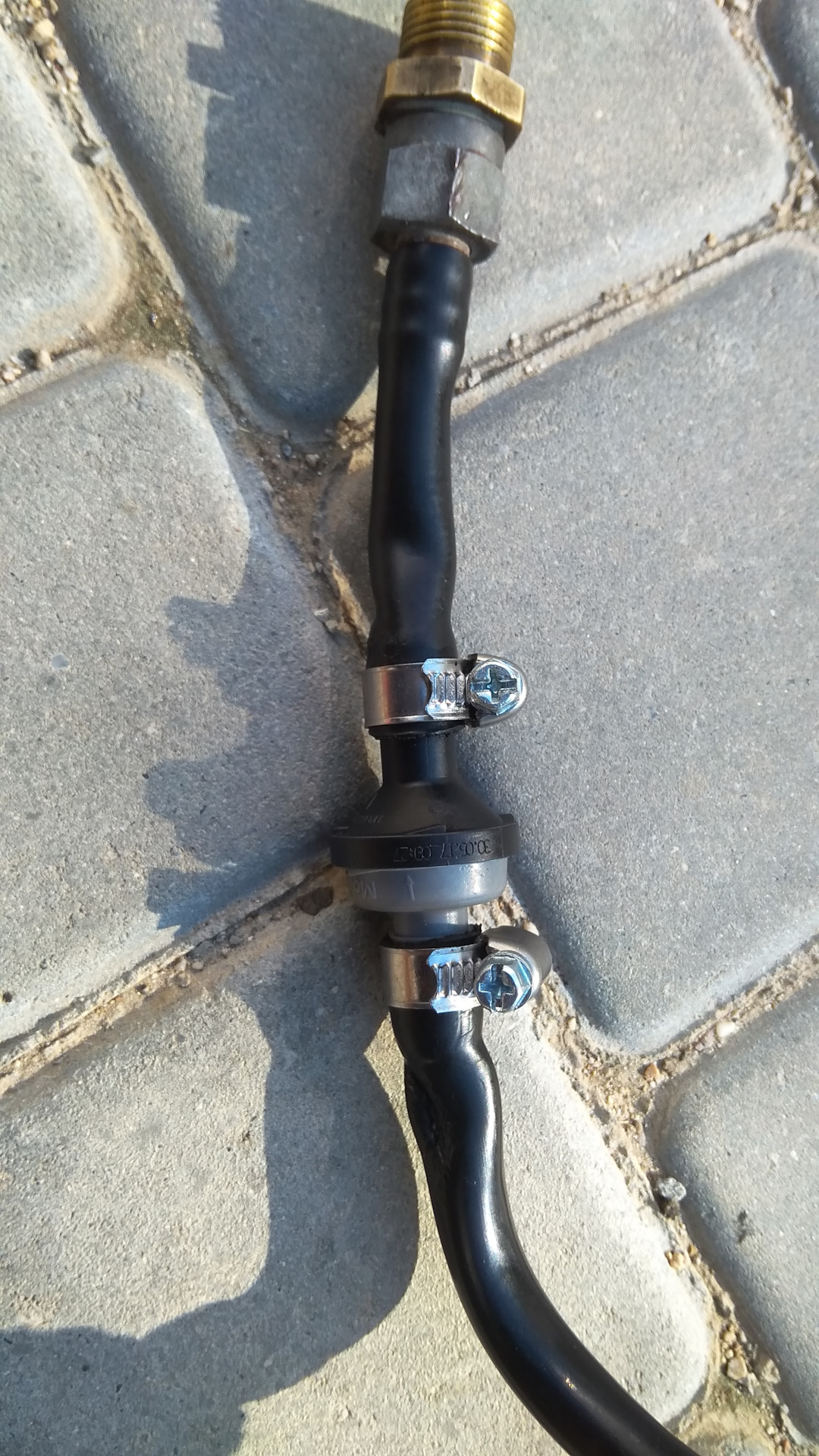 А дальше случилась еще одна напасть: я возрадовался, что все чики-пуки (оно же чики-пики) и стал пробовать крутить обе части трубки на клапане, и у меня получилось! Но в этом случае не ура, на увы( Значит, хреново все это. Так что пришлось усилить конструкцию посредством хомутов. В чудо-багажнике своей 99 отыскал оные и провернул дельце: