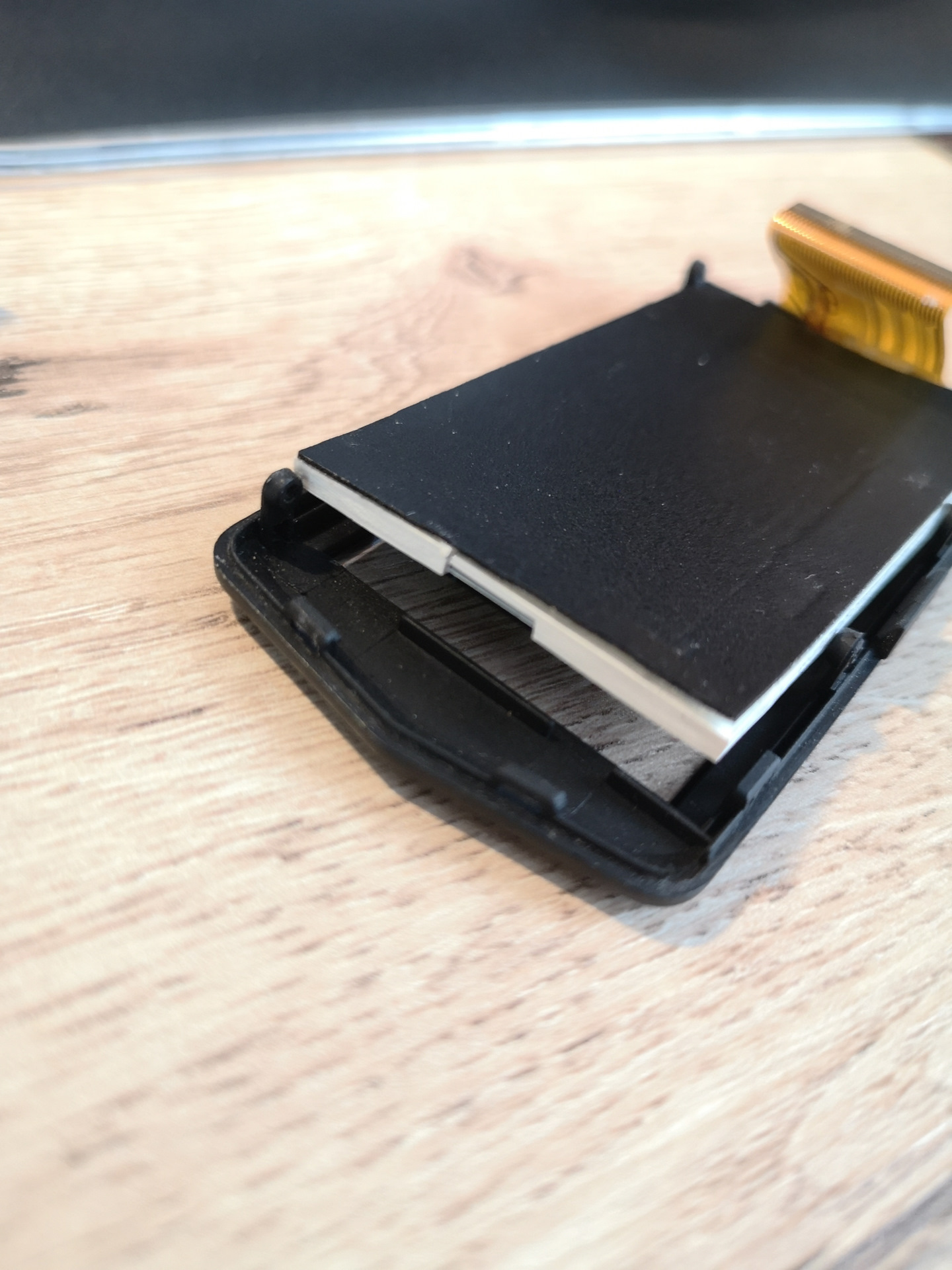 В этот момент что-то пошло не так, LCD-экран сместился на своем посадочном месте, и когда я защелкивал корпус, часть давления пришлась на экран, что сказалось на воспроизводимой картинке =(