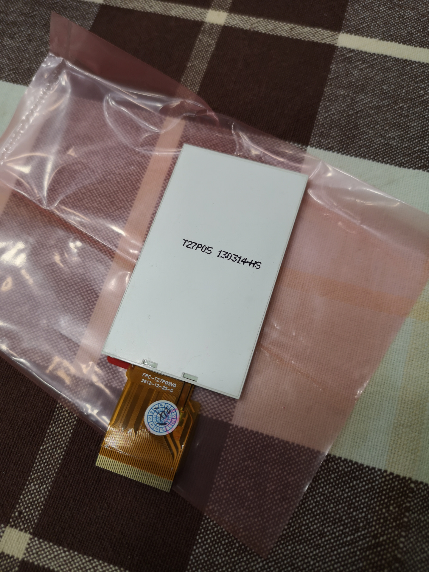 Хочу заметить, что пришел FPC-T27P05V0, а оригинальный FPC-T27P05V1. Однако, внешне они полностью идентичны, и везде они бьются как взаимозаменяемые.