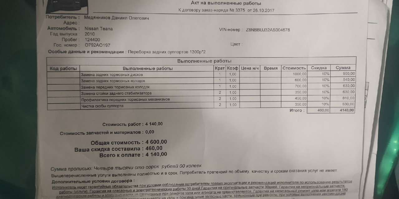 Колодки обошлись в 1900р