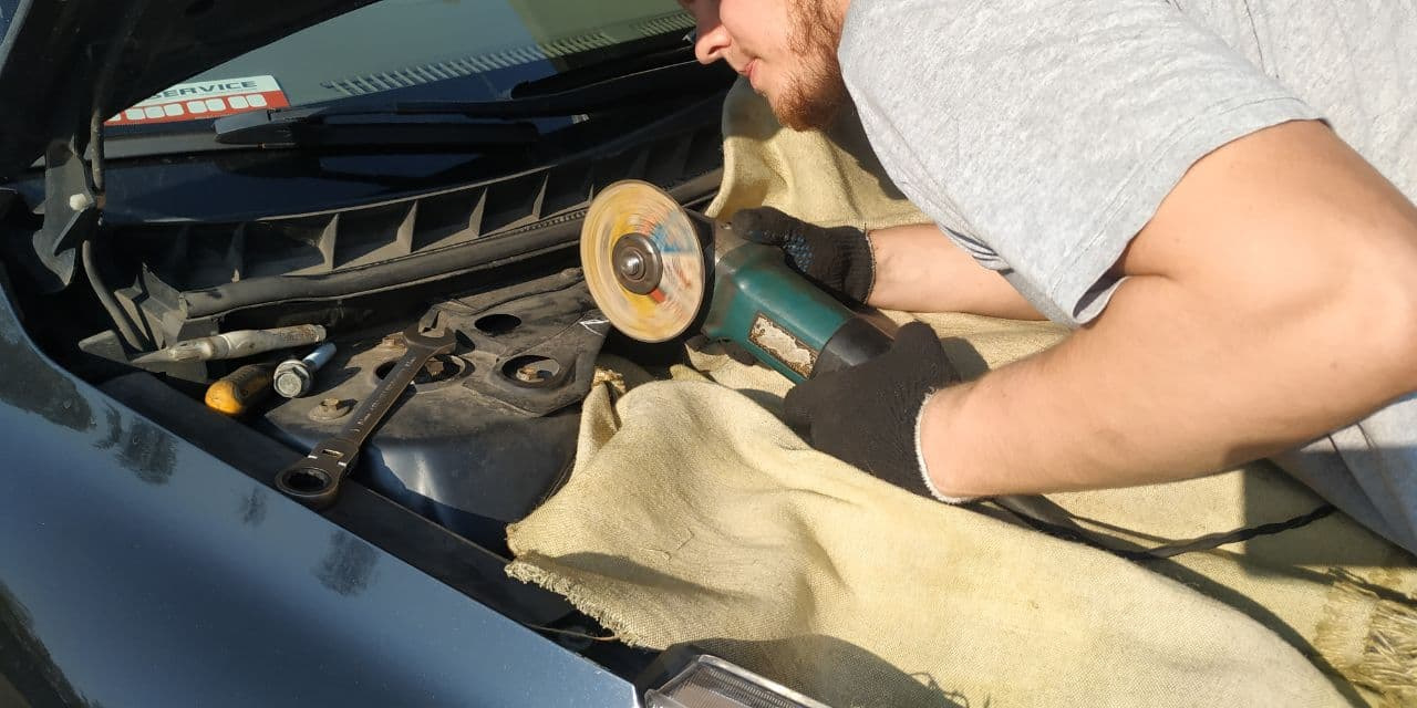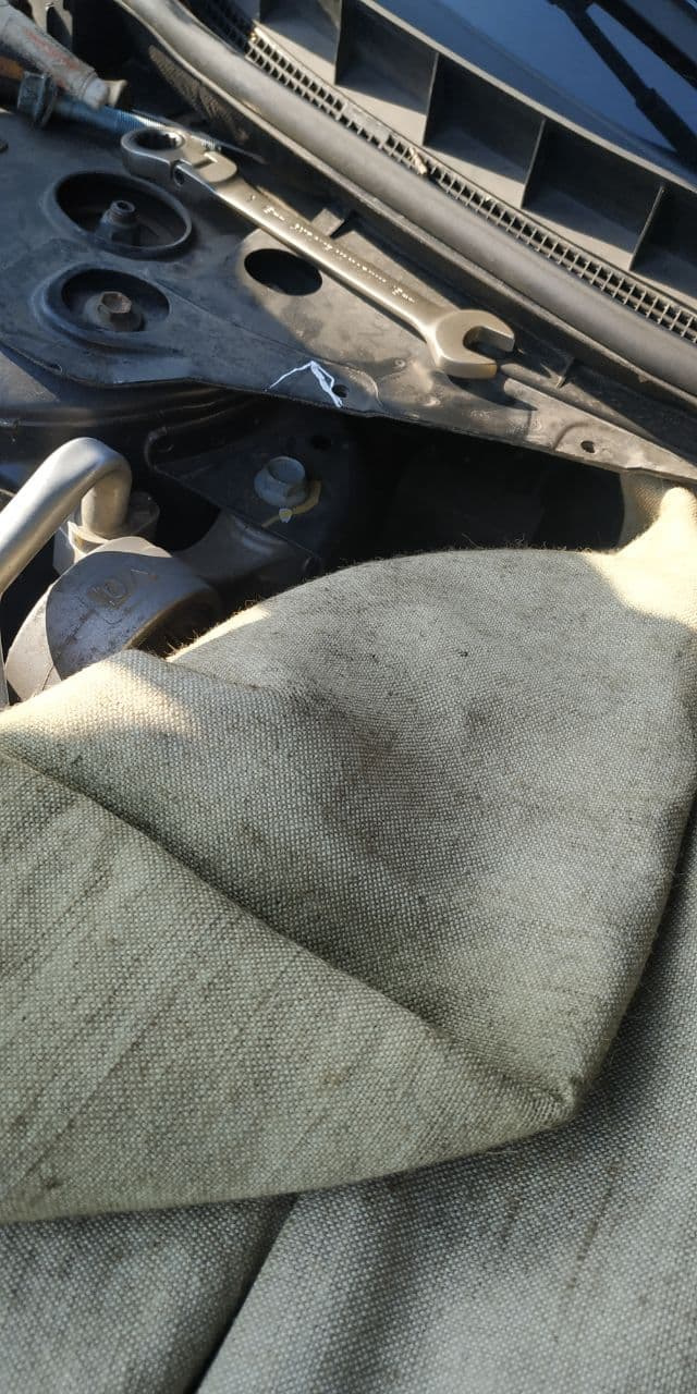 Опору было решено заменить немного варварсикм путем отпилив небольшой кусок от накладки ветровой панели (растяжки). Так как для ее нормального демонтажа необходимо много чего снять. А мешает всего один болт.