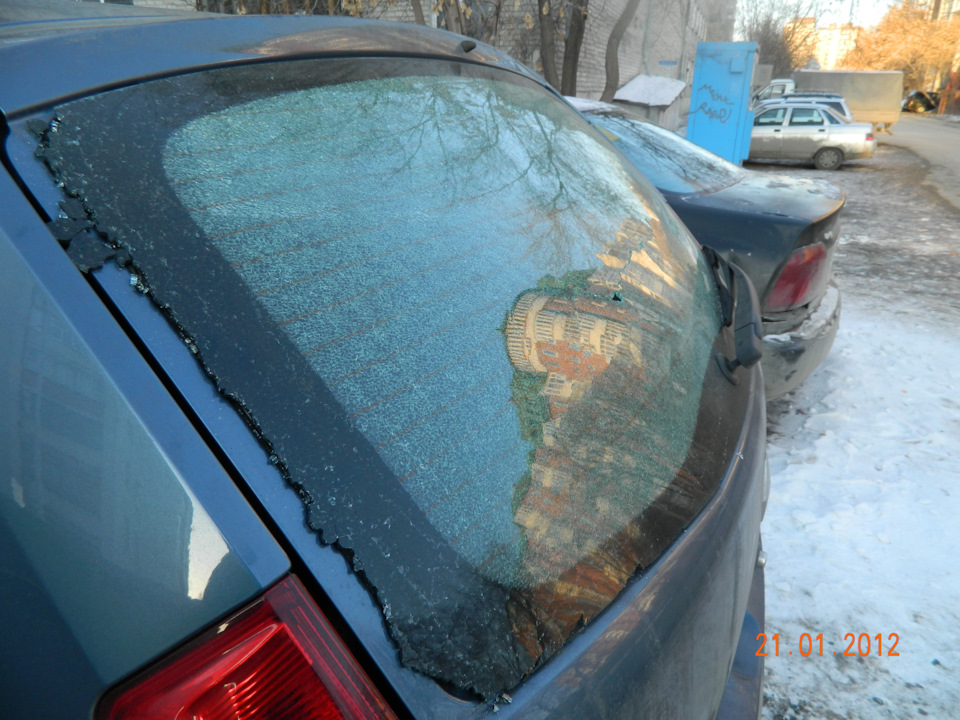 Кстати такие вопросы: стекло осыпалось когда хлопнул дверью багажника или другой дверью? В салоне при этом тепло было илм холодно?