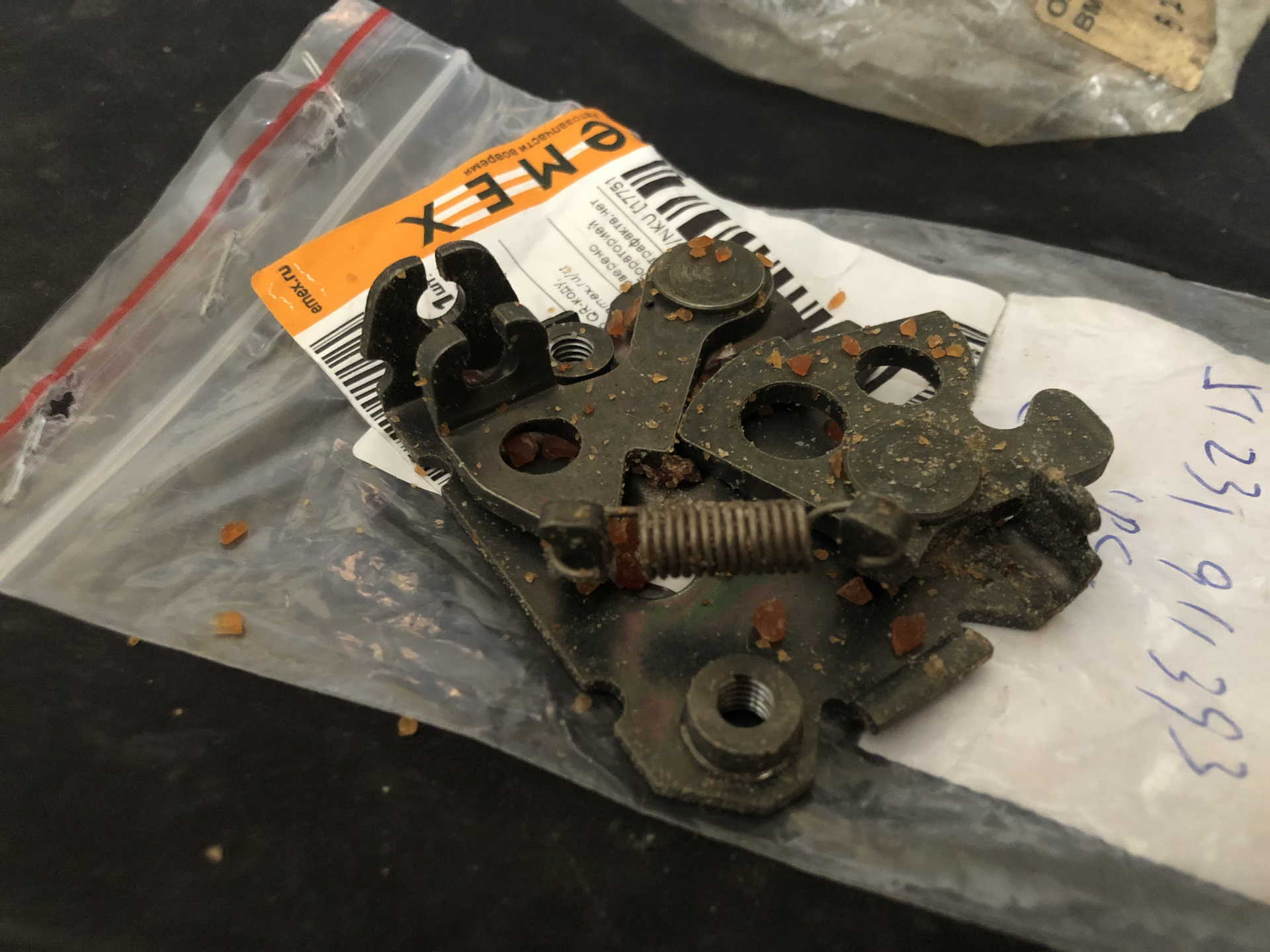 Это ж сколько замок лежал на складе, что на нем смазка консервационная высохла и рассыпалась)