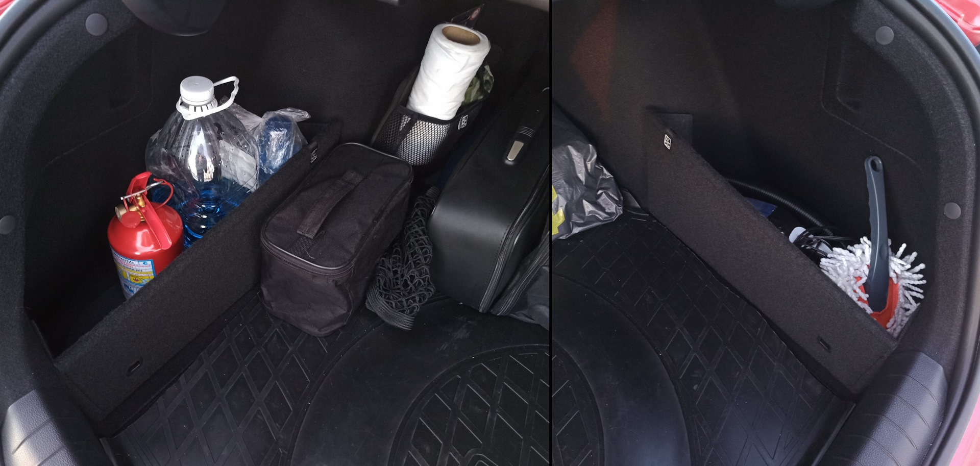 Вроде и так порядок, крепления не плохо справляются со своими обязанностями, только если омывайка полная, то при резком повороте может оторваться. Но дело то не в этом, какую-то мелочевку кинуть некуда, поэтому нужны были перегородки, или как альтернатива — сумки.