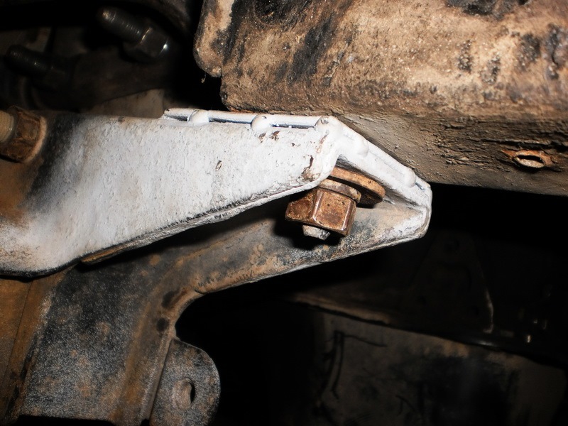 соответственно по приезду встал вопрос, что не дело ездить без передних амортизаторов и надо бы это дело починить. основной вопрос у меня вызывало как снимать кронштейны, которые крепились к самим лонжеронам и на которых сидела и балка и двигатель через опоры. т.к. опасения вызывало смещение отверстий и потом обратная их посадка. но практика показала, что не все так трудно — работы то выполняли последовательно — сначала правый кронштейн, левый соответственно прикрученный и держит балку и двигатель + поддомкрачивание балки и двигателя (спасибо Trent63 за консультации — тоже знатный отламыватель кронштейнов и разрушитель ШНГ). потом вторую сторону. открутилось все собственно без особых проблем.
