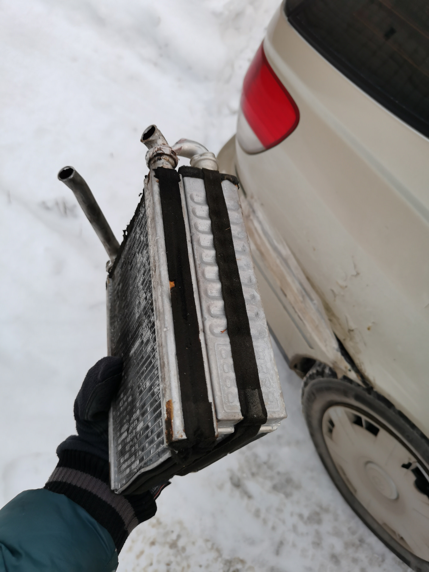 Поездил пару недель после покупки. Тепла не было. Порой даже печка не могла расплавит снег на лобовухе. Ну жопа одним словом. Хотя в салоне было теплей чем на улице))) Помониторил цены на радиаторы печки от ипсума. Было несколько вариантов от 4000 до 6500. Ну естественно было жалко денег! Загорелся брать салон с распил в идеале. Какая нахрен печка!))) это же я за 4500 почти дверные карты куплю!)) Но холод в салоне слегка напрягал. В голове вретелись мысли о бюджетном варианте))) к-кроилово!