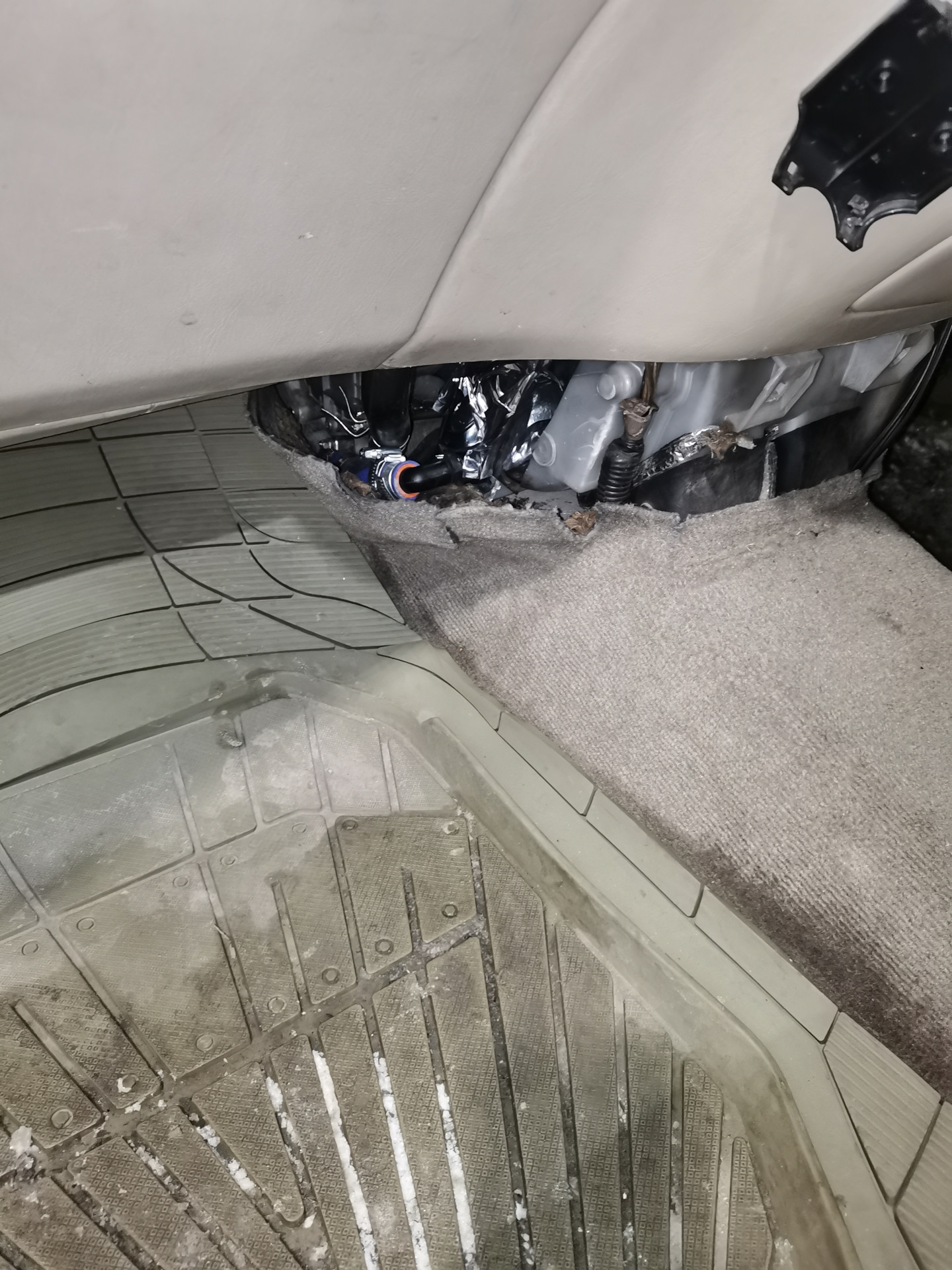 Радиатор этой пласмаской в низ поставил?! Я поставил от ипсума, завльцевал как по заводу, не знающий и не догадается что печка не родная . всё сразу заработало без танцев с бубном, при температуре на улице -20 климат стоит на 23-25, левую ногу с подставки убираю ибо печёт .