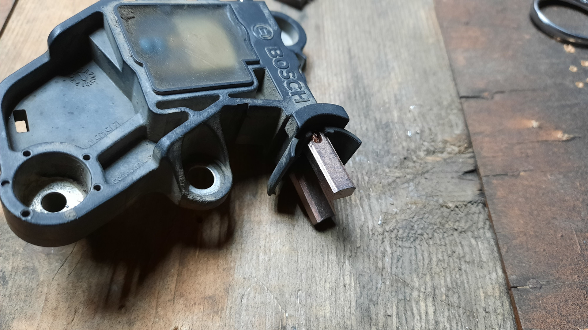 Итак, родной регуль провалялся почти пол года в гараже. Меня достали эти долбанные скачки напряжения и я решил поискать замену. Оказалось, что есть в принципе недорогие аналоги, но потом я наткнулся на инфу, в которой просто и элементарно было сказано и показано, как заменить щетки на родной шоколадке. И дело пошло.