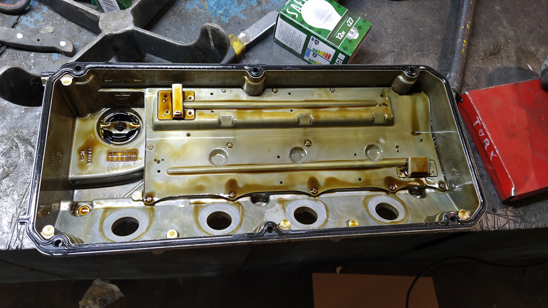 Скидываем крышку ГБЦ, меряем на горячую зазоры. Итог первый пережат в говнище, второй и третий болтаются, четвертый ни туда, ни сюда, ну типа в норме.