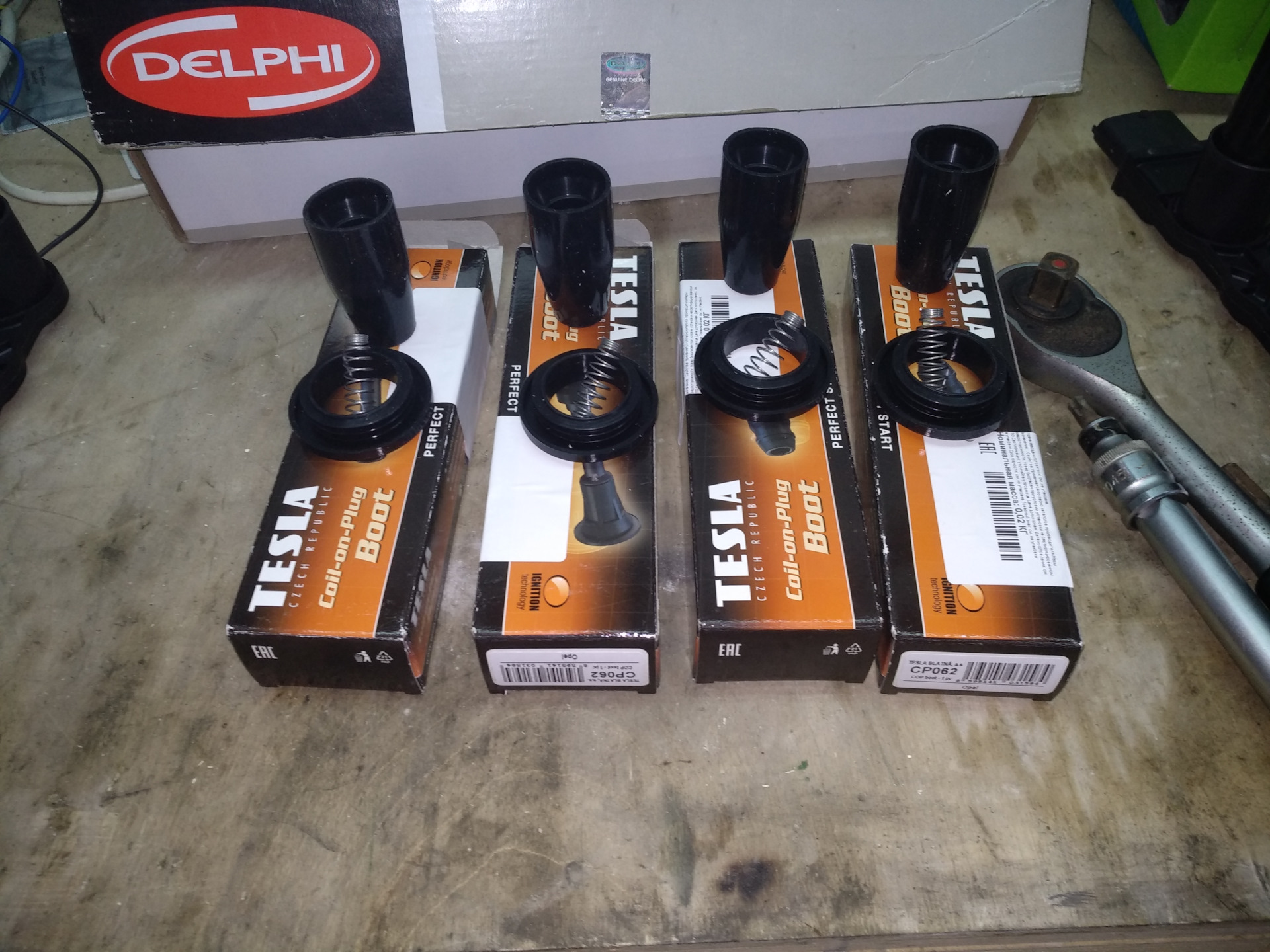 Для нашего модуля зажигания продаются чудесные комплекты наконечников — Tesla CP 062. Стоит не очень гуманно, но поменять раз в 30-40 тыс. км. можно (это примерно 2 года использования авто).