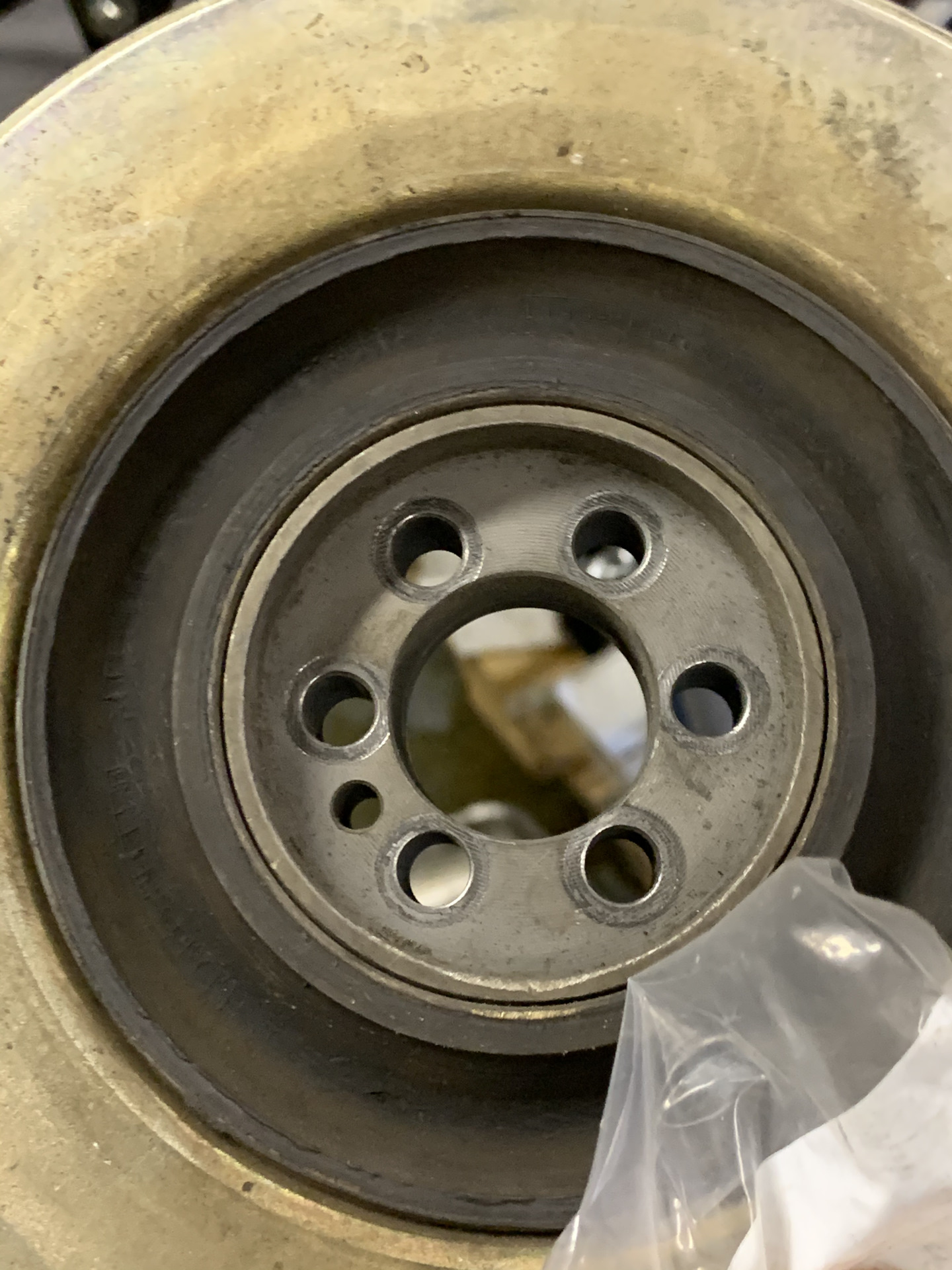 сам же натяжитель был вял и уставшим, его можно было сжать руками особо не напрягаясь, в отличии нового. Ремень OEM 55193360, сам натяжитель взял INA 534 0046 10, такой же лежит в оригинале. Изначально хотел взять оригинал, но срок ожидания в 3-4 недели и цена в 180 евро, вместо "на завтра" за 56 INA, остудили мой пыл. Глянем, как покажет себя неоригинальный оригинал. По сколько мы уже были там, решили, в очередной раз, проверить демпфер колена и не зря, как оказалось. С виду эта падали не вызывали никаких нареканий