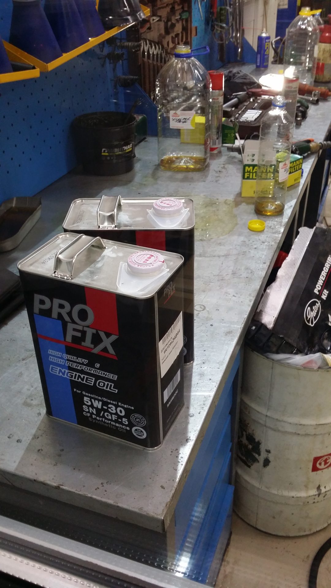 Поменял маслице в моторе. Масло было уже черненьким и поэтому не докатал до 5000 всего 450 км. Как всегда масло Profix 5w30 по цене 1800р, фильтр масляный Mann по цене 250р, ну и "масляный душ". Не пользуюсь промывками совсем.