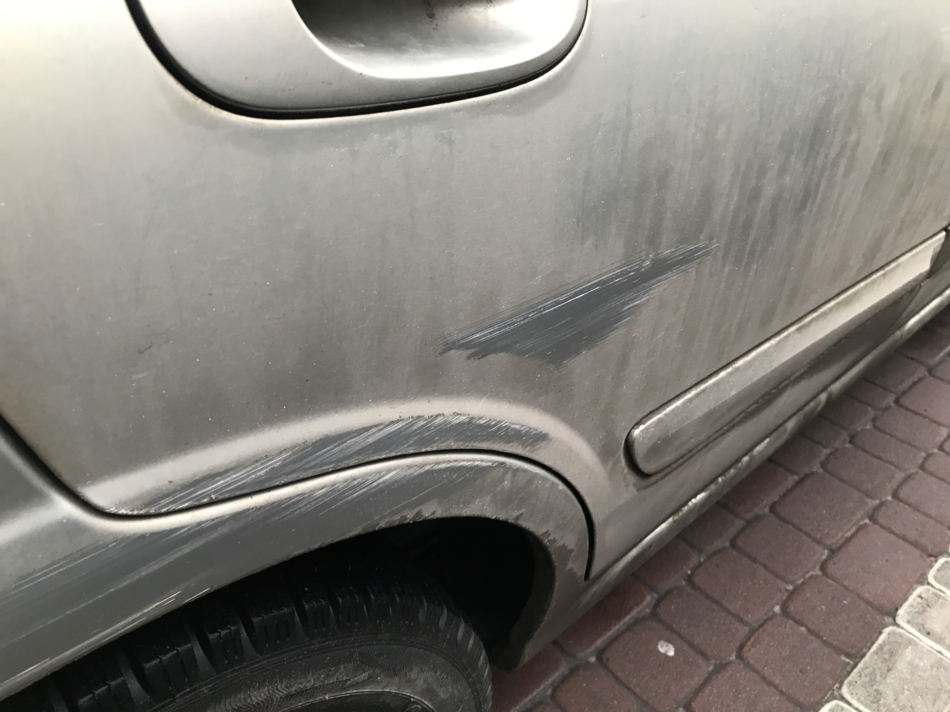 Без лишних слов, выхожу из магазина и, подходя издалека к автомобилю, обращаю внимание на правую сторону бампера, чем больше сокращается расстояние до автомобиля, тем отчётливее я начинаю осознавать, что меня притёрли на парковке!