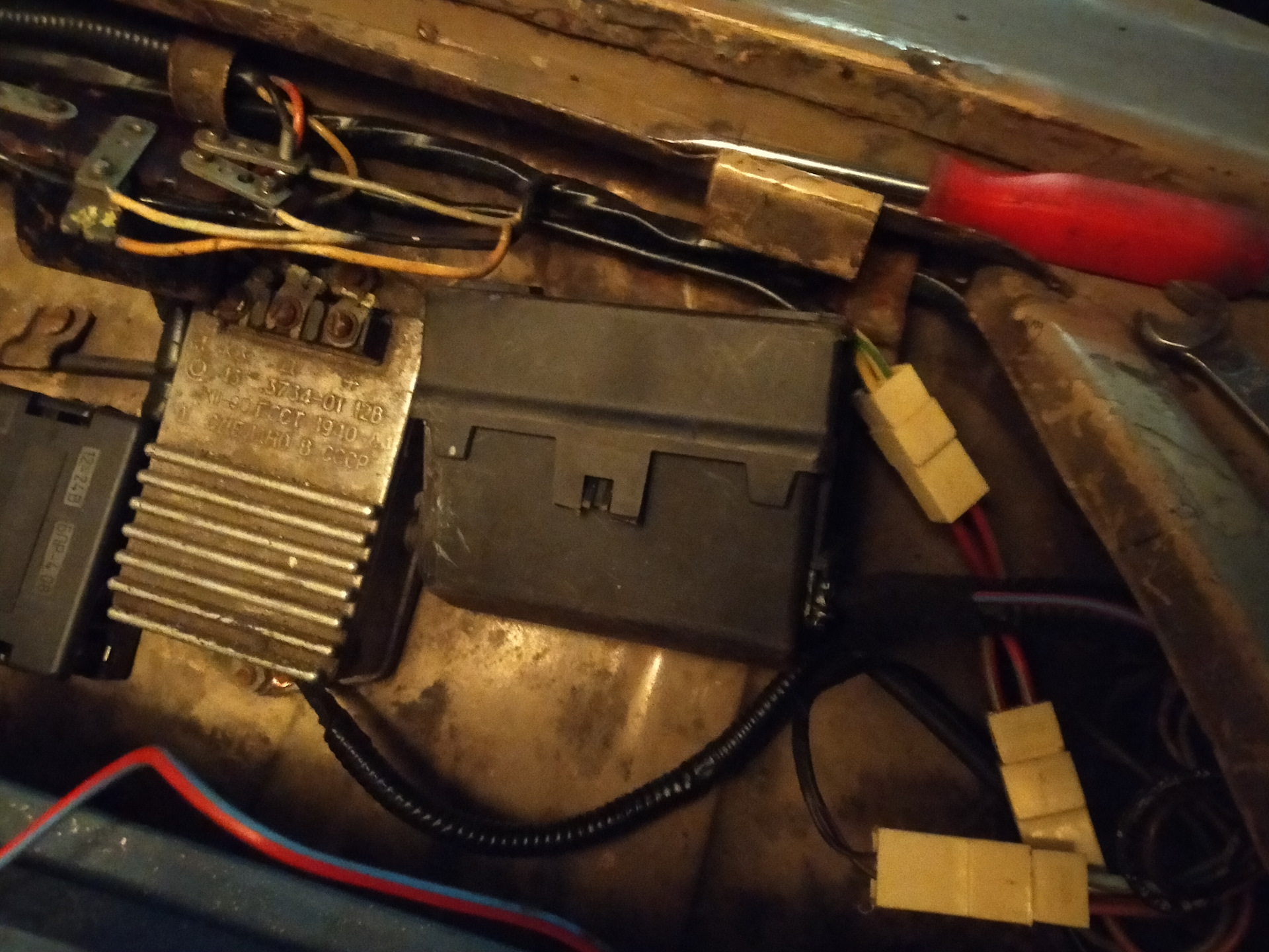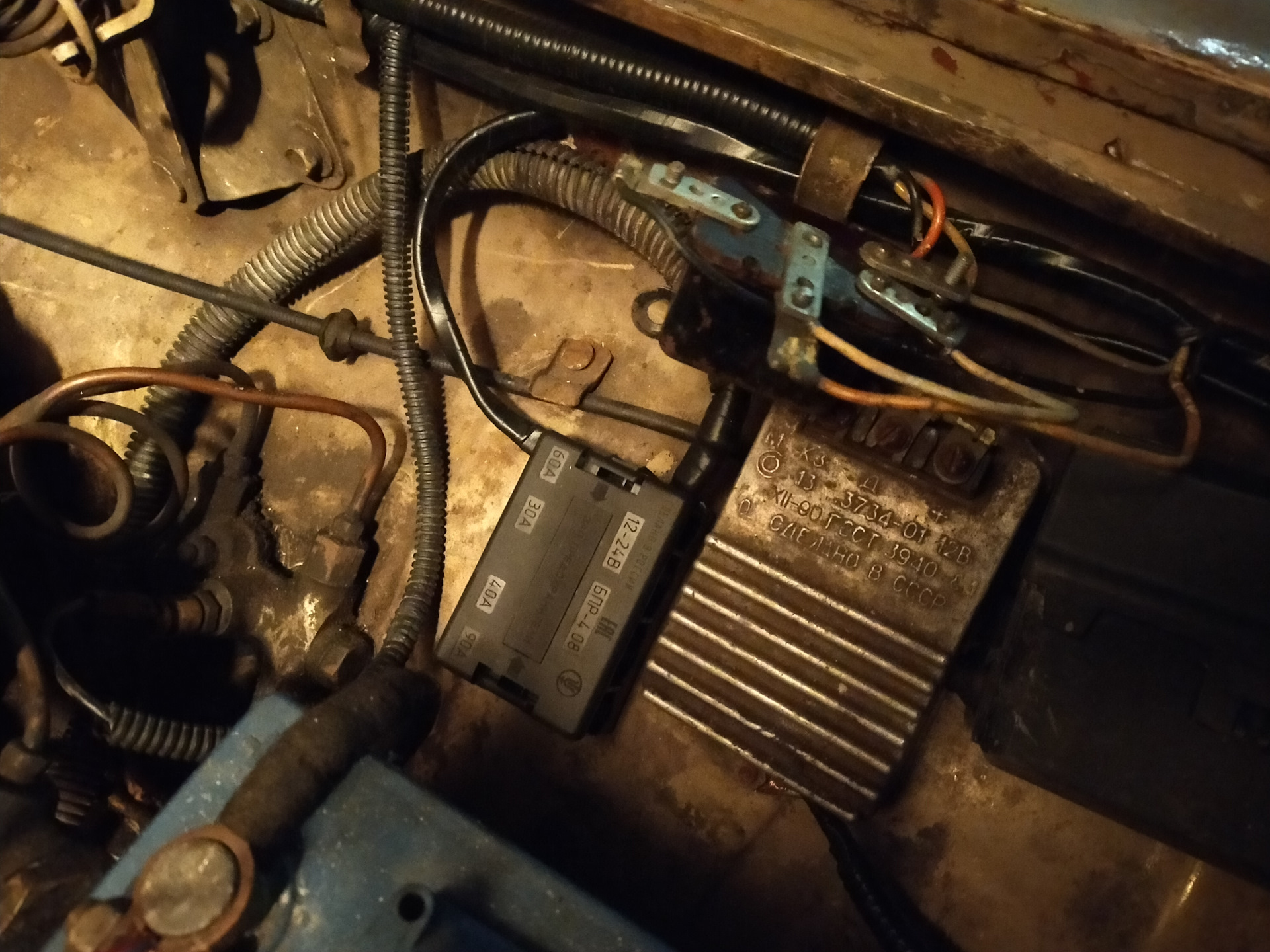 Но вернёмся к нашим баранам, начав устанавливать гену от Шевика я столкнулся с проблемой несоответствия креплений, далее последовал долгий процесс подгонки и изготовления проставочных втулок (на них пошли поршневые пальцы от мотора Вихрь-30, да да, такой тоже имеется в моем хозяйстве), но в итоге гена занял свое законное место, и сегодня я наконец прицепил карлсона вместе с проводкой, ах да, ещё я привесил на место релейные модули разгрузки фар, с ними фото будет позже, а пока