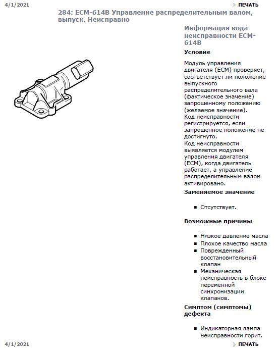 ECM-614B Управление выпускного распределительного вала — Неверен