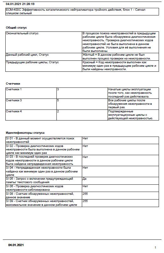 ECM-400C Эффективность каталитического нейтрализатора тройного действия, блок 1 — Сигнал
