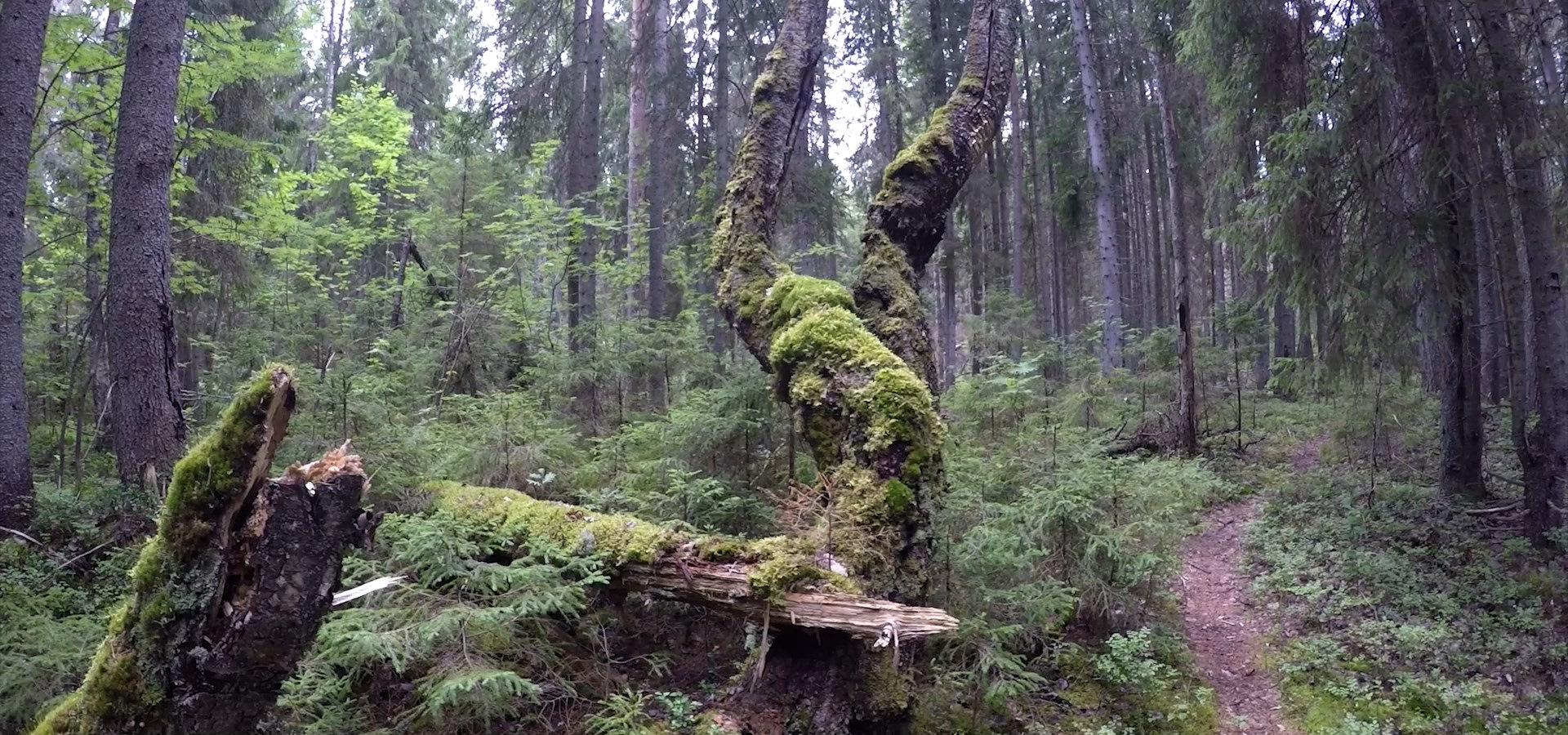 Углубляемся в лес по живописной тропе. Преодолевая препятствия придерживаемся её (где-то 700 метров), до самого озера.
