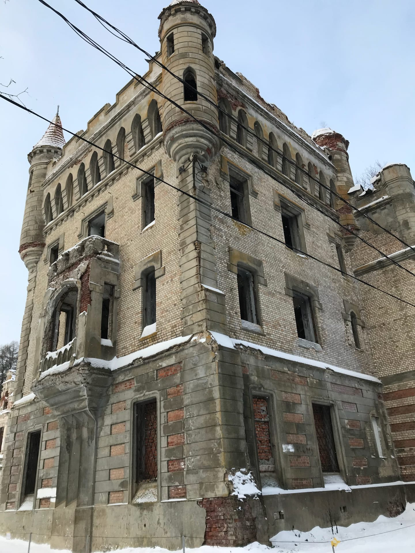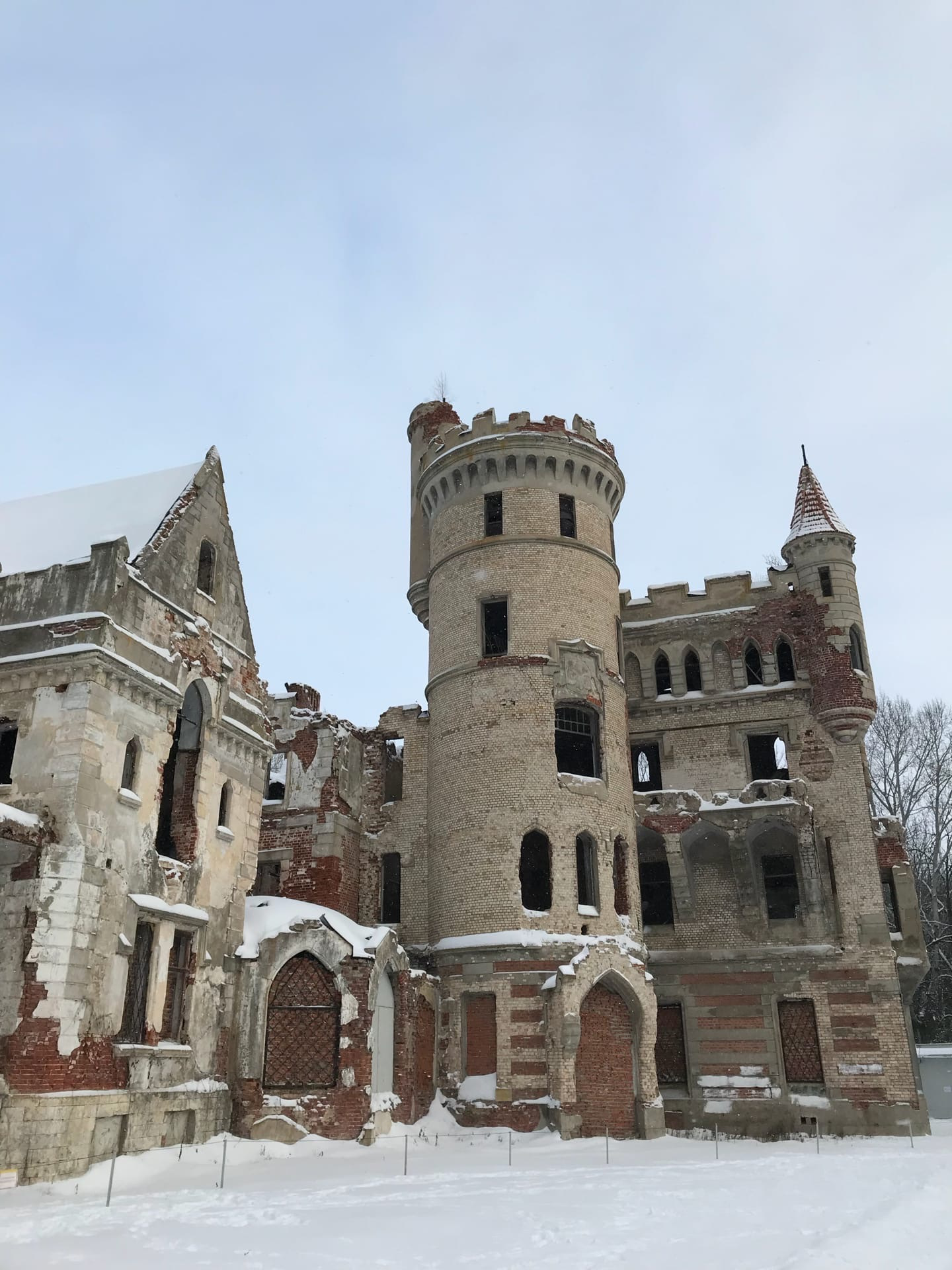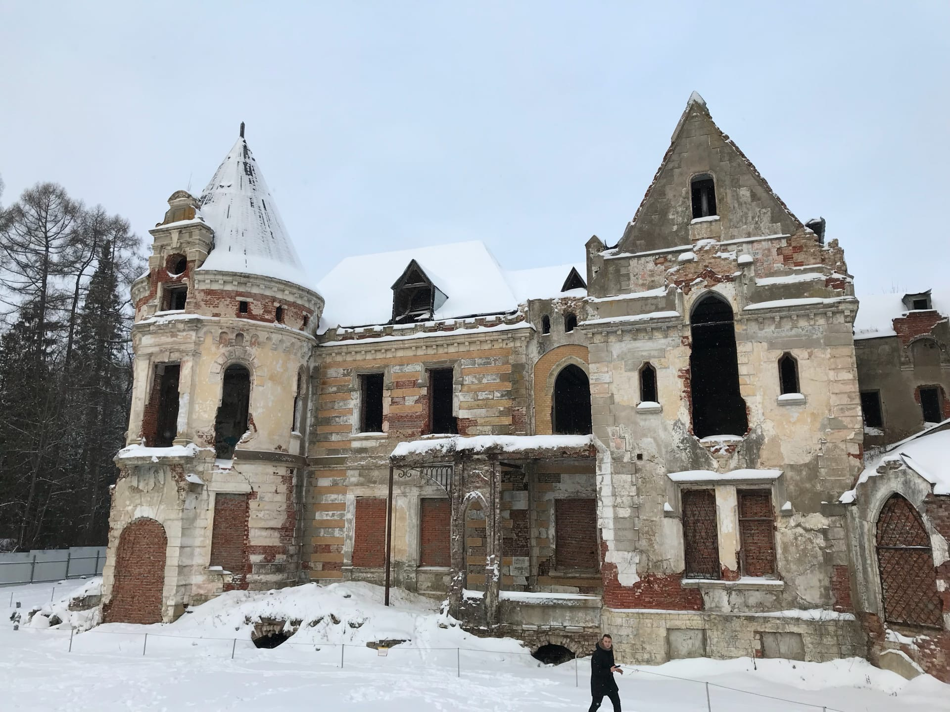 Усадьба прикольная, территория замка огорожена забором, вход через павильон, стоимость билета на 1 человека — 100 руб. Внутрь дома заходить нельзя, все двери и окна первого этажа заложены кирпичом. Замок крутой, башни как в дисней ленде)) Территория усадьбы огромная, вниз от замка идет пруд, лодочная станция :) Если бы все это отреставрировали, то посетителей было бы гораздо больше.