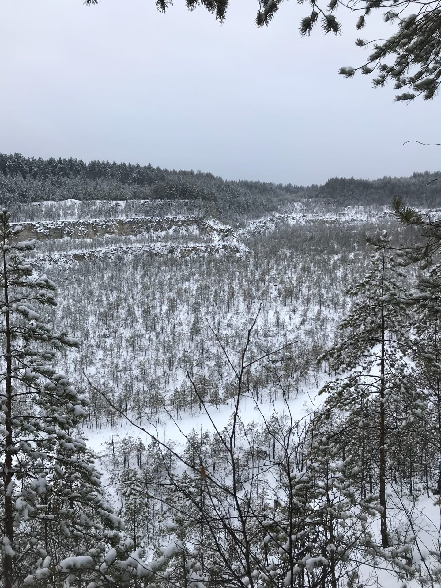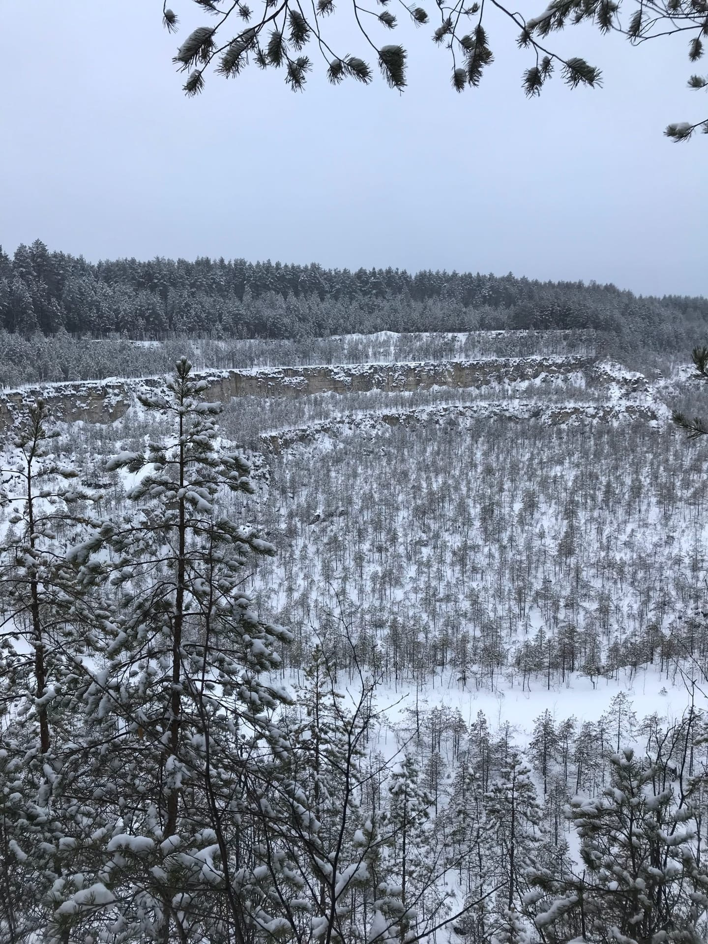 Отправляемся из Мурома до Тюрмеровки (75 км), затем в середине Тюрмеровки поворачиваем направо и доезжаем до Дюкинских карьеров (11,5 км), ехал точно по яндекс навигатору. Дорога в снегу ровная и очень широкая, видны следы от дрифта мамкиных хулиганов :) Доезжаем по данной дороге до будки со шлагбаумом, оставляем машину у него и идем прямо по этой дороге. Т.к. сейчас зима, то легко нашли поворот на небольшую площадку, с которой видно весь карьер. Карьер глубокий, вид крутой. Кроме нас никого больше не было на этой огромной территории)