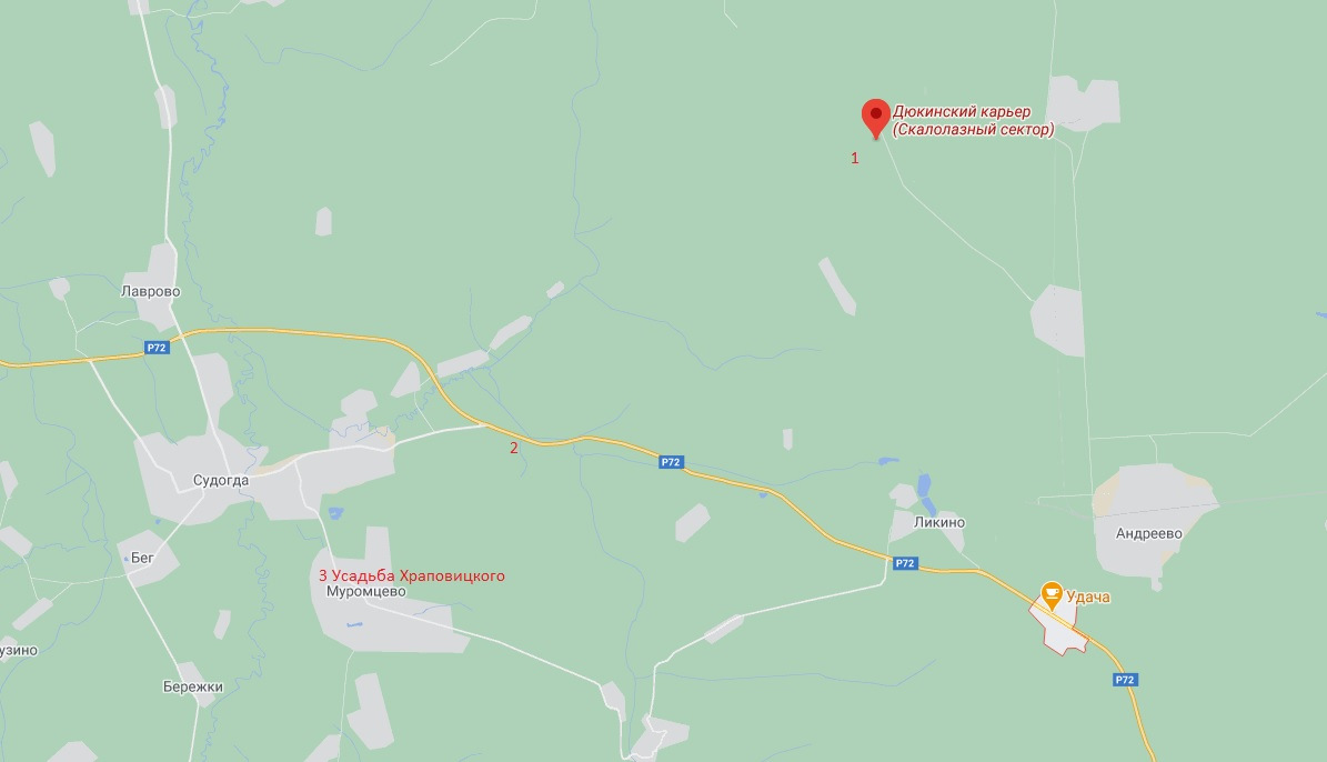 Поэтому формируем план путешествия: Дюкинский карьер --> артезианский фонтан --> усадьба Храповицкого (г. Муромцево)