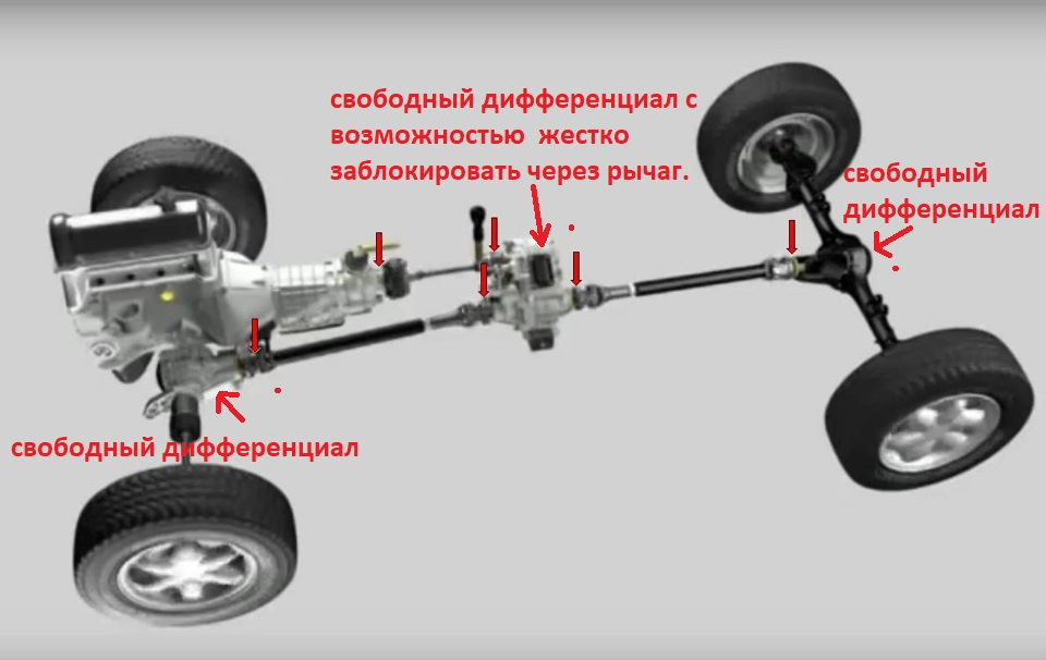 Раздаточная кпп свободный дифференциал с возможностью блокировки жестко в ручную.