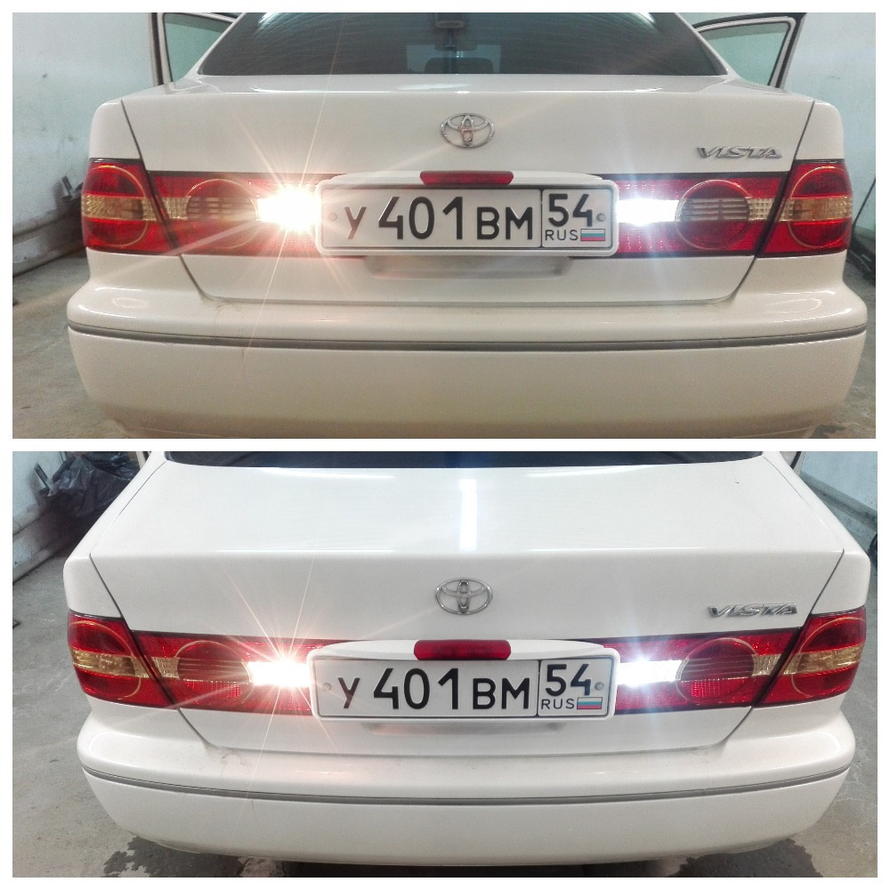 Ну и на последних фотографиях показан конечный результат с двумя лампами w16w Super Bright led. Сразу скажу, что результатом более чем доволен. Не прожектор, лазер и не линза конечно же, но за свой бюджет яркость примерно в 2 раза больше, чем от штатной галогеновой лампы.