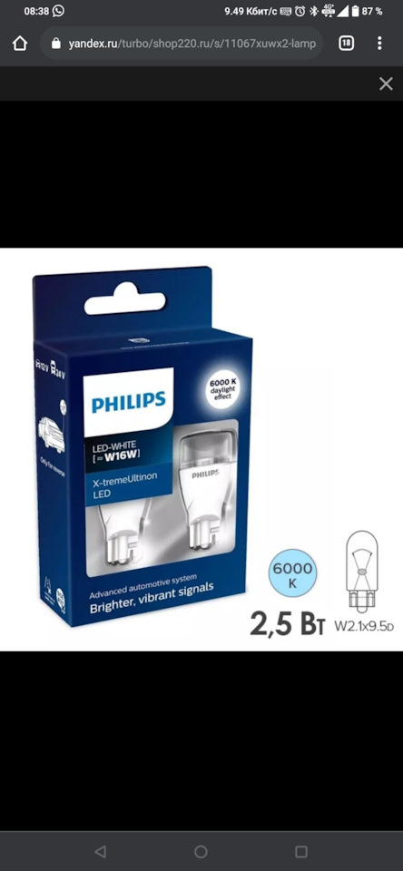 Такой филипс у меня есть дома, лежит теперь как дополнительные лапочки) Правда в цоколе w21w. Светят ярко, примерно так же как и эти китайские w16w. Но и стоят не дешево