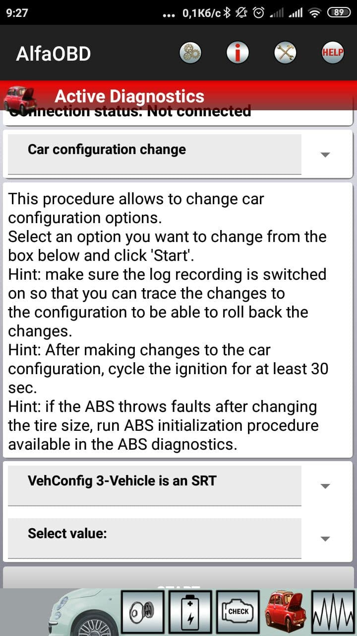 Car Configuration change -> vehConfig 3- vehicle is an SRT поставить yes -> START
