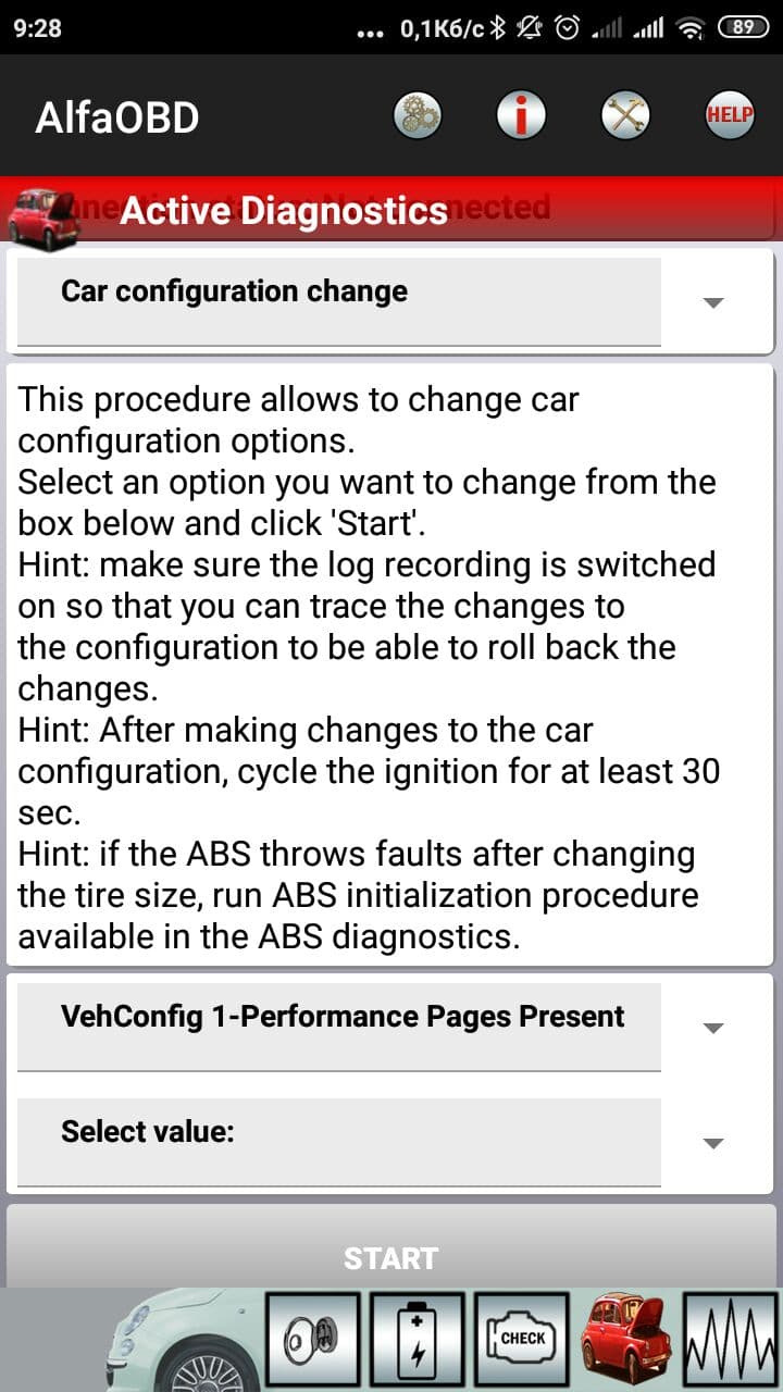 Car Configuration change -> vehConfig 1-Perfomance Pages Present поставить yes -> START