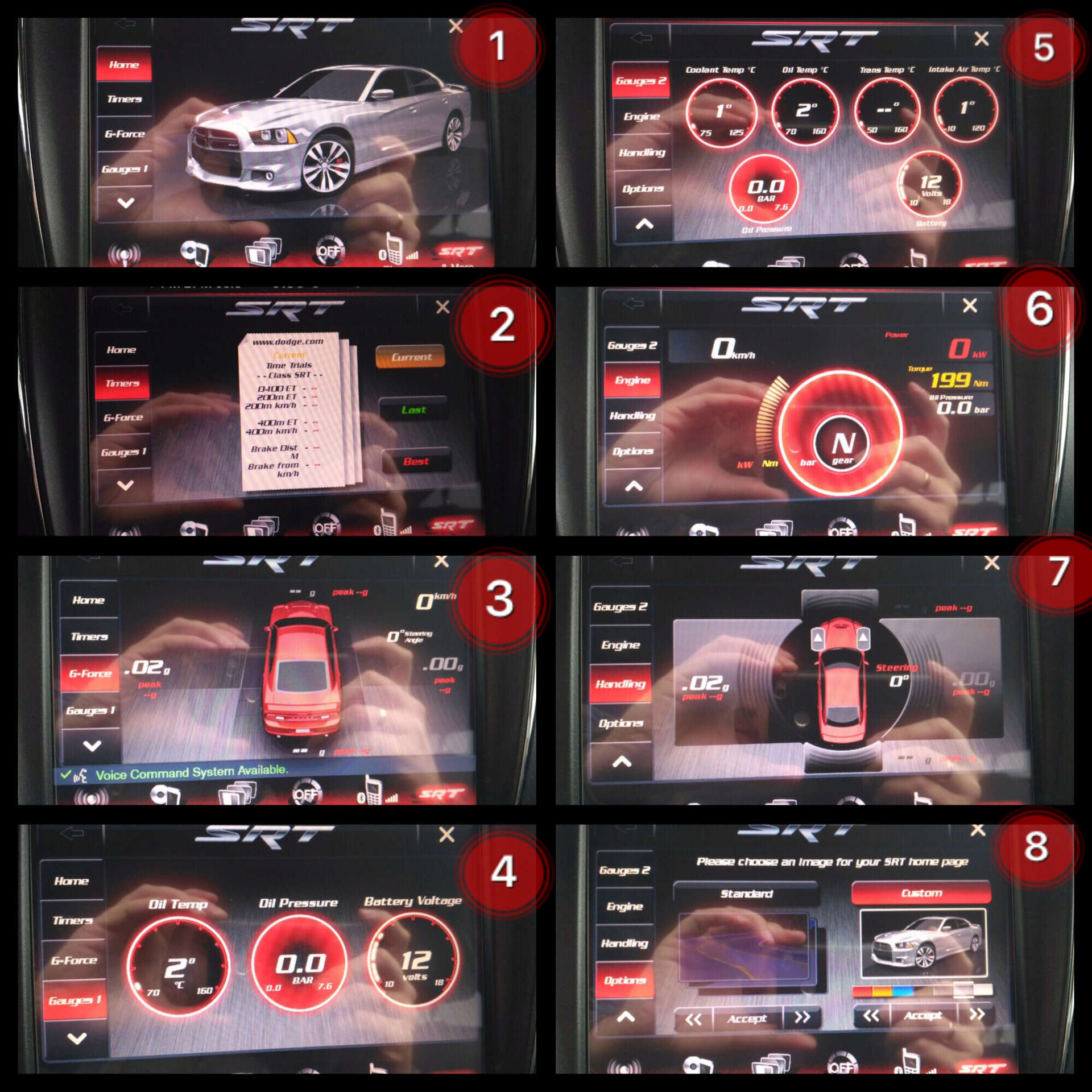 Все готово! Но, поскольку в наших авто SRT-меню не предусмотрено заводом производителем, функционал будет урезан :(. В данном меню имеем 8 пунктов с разными данными.