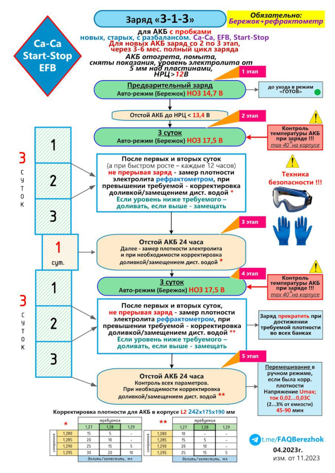 Тоже купил Бережок V1, электронную нагрузку, рефрактометр, тестер Конвей 650 и сейчас балуюсь в гараже, тренируюсь на акумах друзей! Заряжаю вот по такому алгоритму: