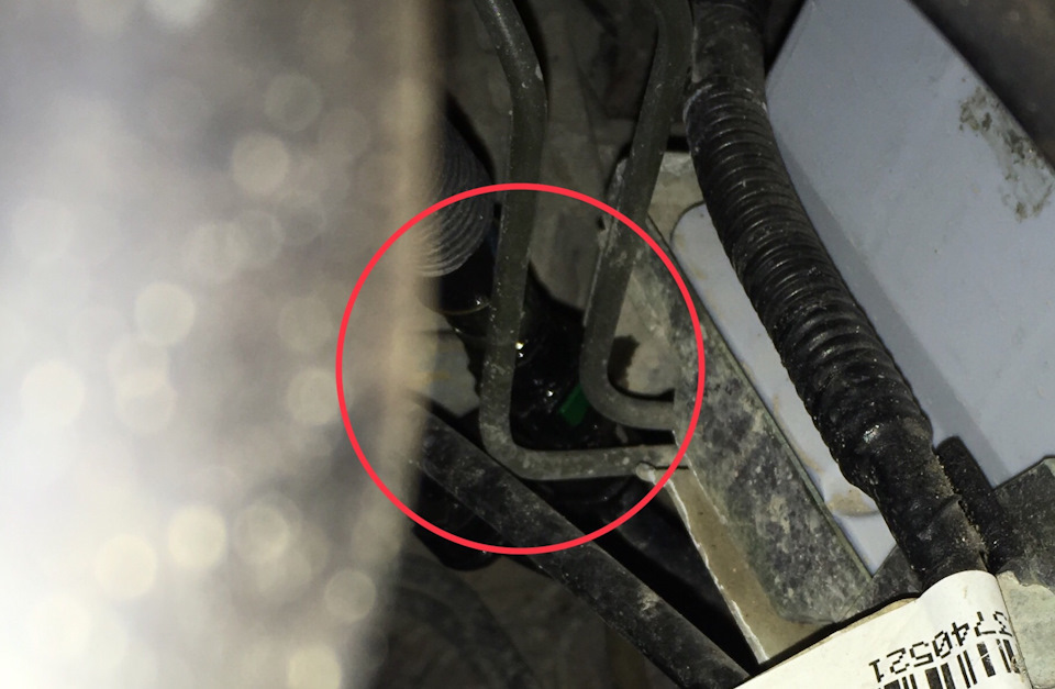 Вот теперь будет проблема не масло с ОЖ смотреть, а этот штуцер. Внимательно осмотрел, если бы было, то след в пыли должен отпечататься. Теперь и прикасаться страшновато, вдруг нарушится. Не было печали.