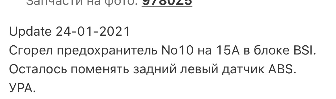 Сгорел предохранитель No10 на 15А в блоке BSI.