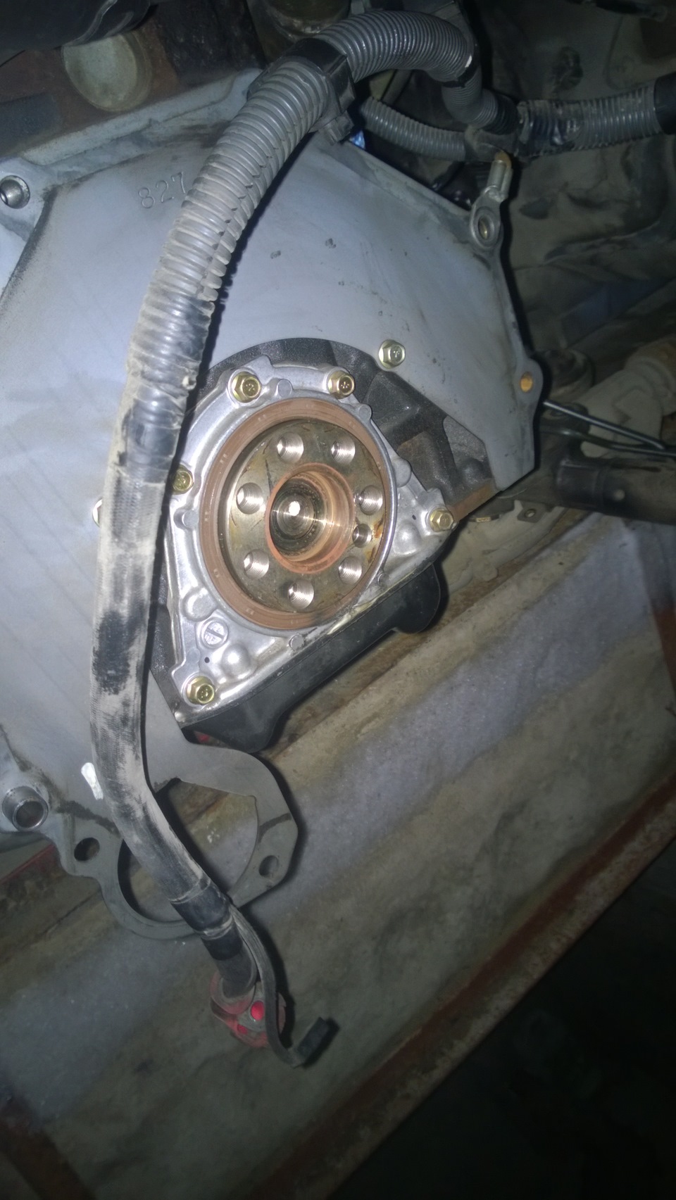 затем окрутил пластину к которой был прикручен бублик и увидел втулку торчащуюю из коленвала и не знал что с ней делать так как она не давала сеть на место маховику(((