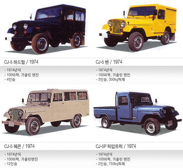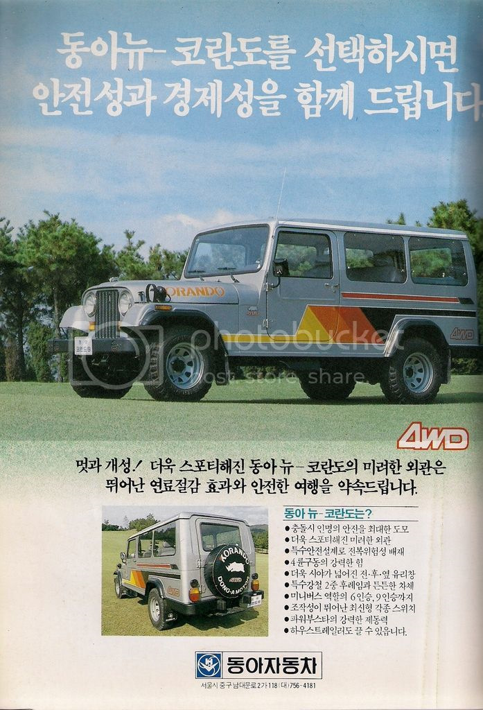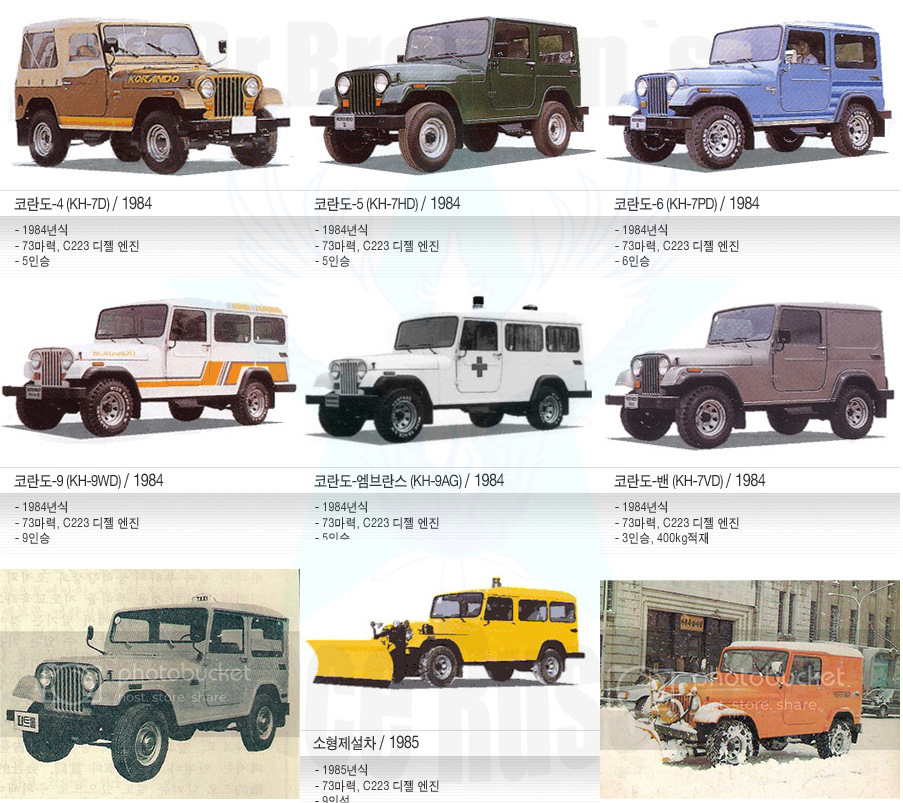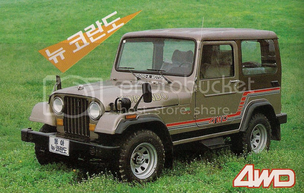 Надо отдельно отметить тот факт что несмотря на отзыв лицензии торговой марки JEEP, лицензии на агрегаты продолжили свое действие. Корейцы успели лицензировать не только мотор 3.8 но и 4.2 а так-же другие агрегаты и раму новейшего CJ-7, что помогло впоследствии расширить модельный ряд.
