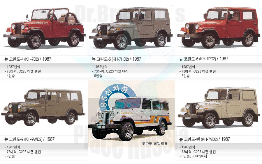 Примечательно что в то время официальное название было Keohwa Diesel Jeep Korando, в случае 9-местного автомобиля, выпущенного в ноябре 1983 г., свидетельство о регистрации автомобиля гласит что он записывается как Diesel Jeep Family 9. Это при том что лицензии Jeep у компании не было.